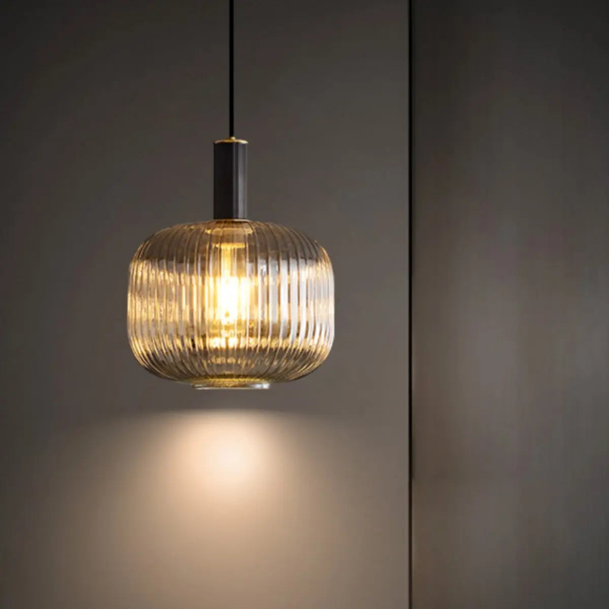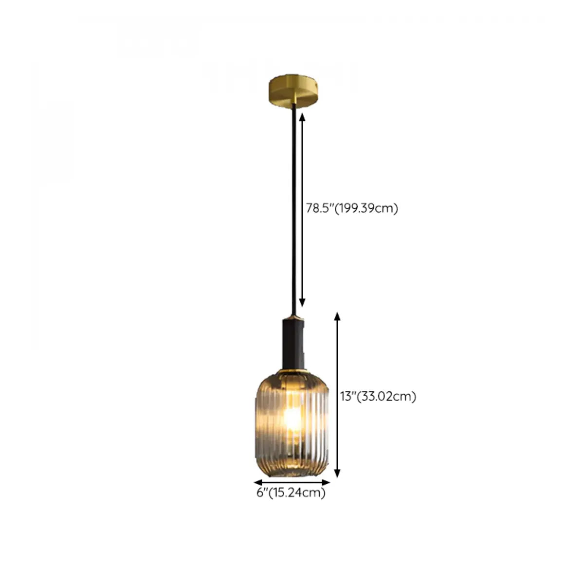 ZOWALA - Modern Clear Ribbed Glass Cylinder Pendant Light