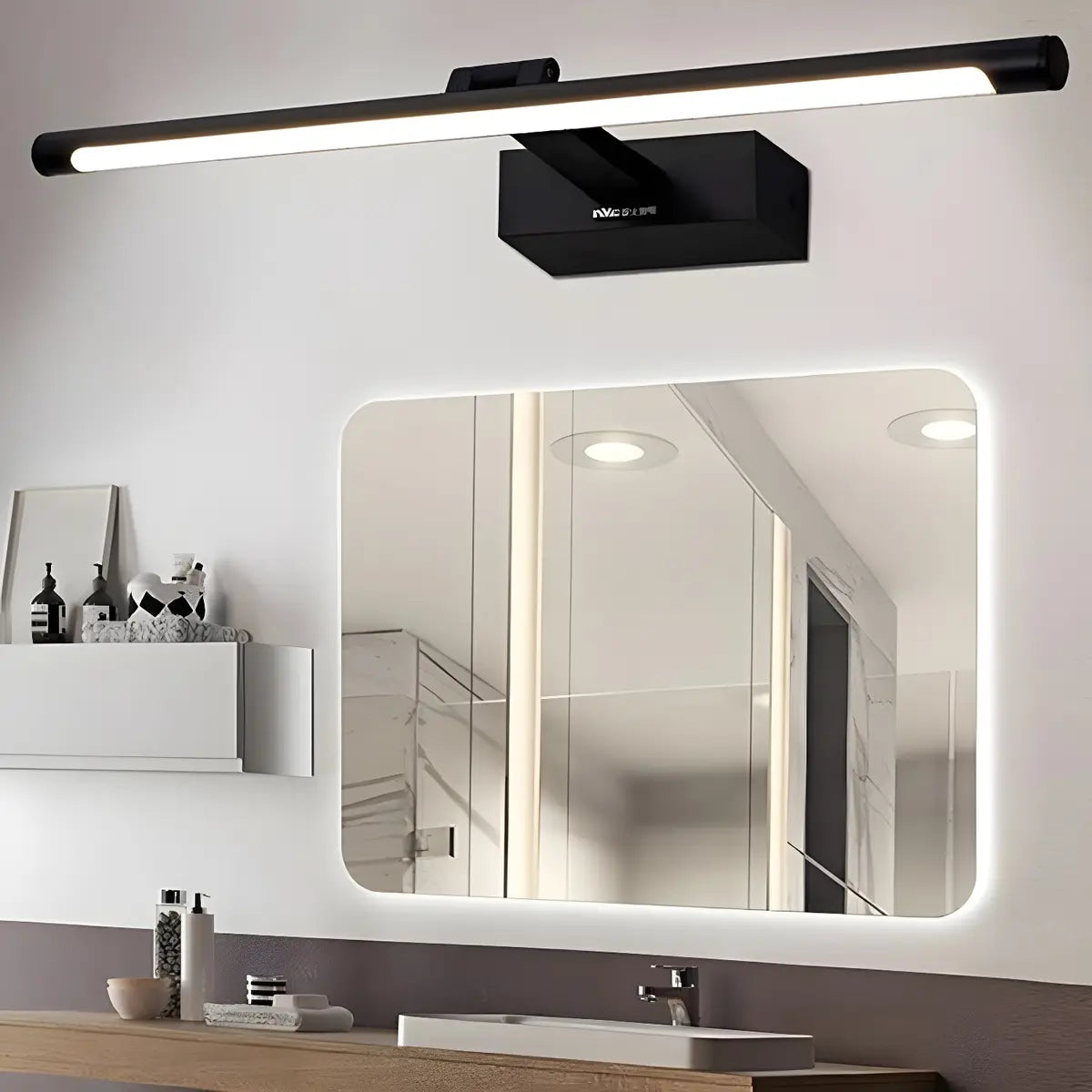 This modern, long LED vanity light has a simple and sophisticated design that adds a stylish touch to your bathroom. The light is black, which complements any decor style. It also provides soft, even light without glare, which is particularly suitable for environments that require delicate lighting. This light is ideal for redecorating and simple updates.