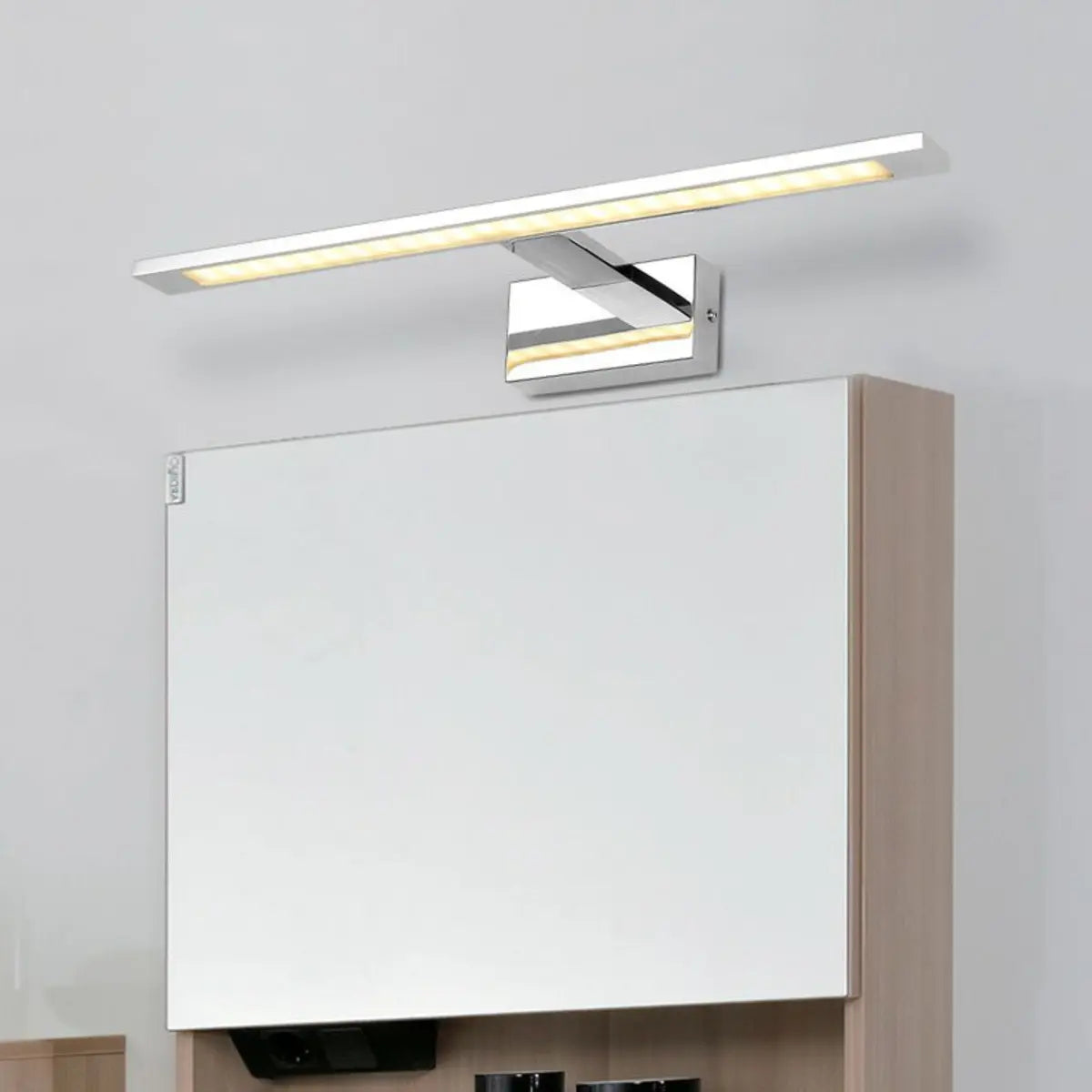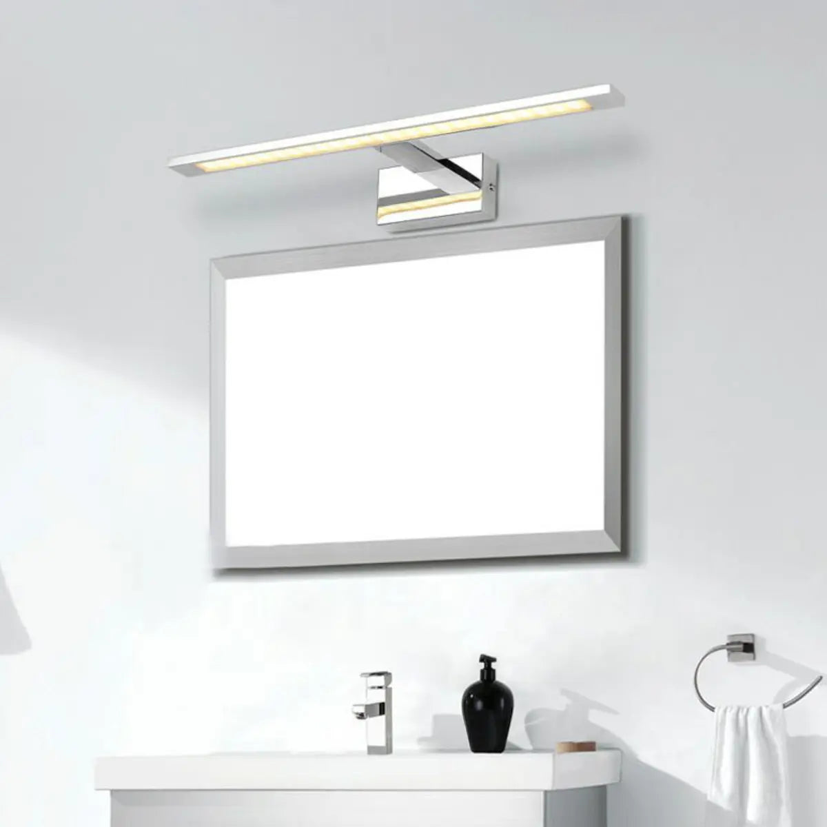 This modern and simple LED bathroom vanity light features a stylish rectangular design and bright silver finish, adding an unparalleled modern touch to your bathroom. Its elegant lines and warm glow perfectly create a comfortable atmosphere, allowing you to enjoy an elegant experience every time you use it.