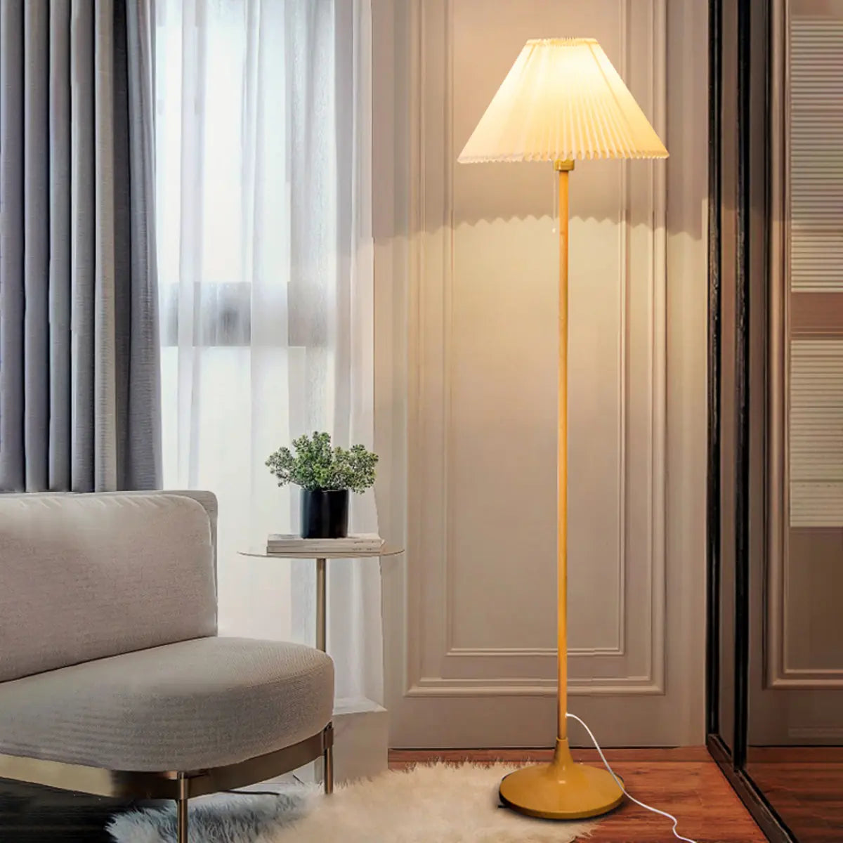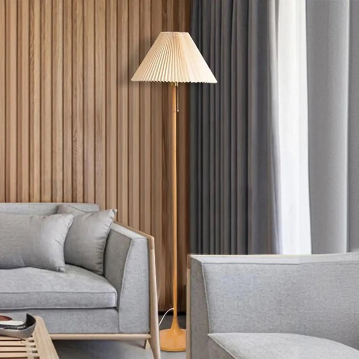 ZOWALA - Modern Simple Pleated Fabric Cone Floor Lamp
