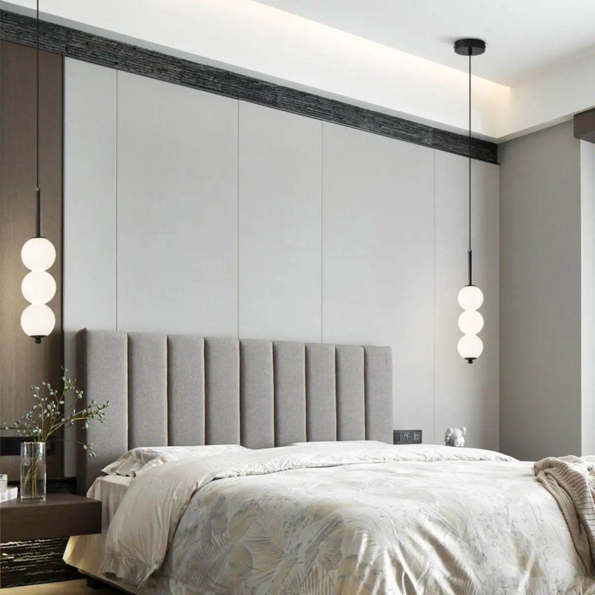This modern minimalist-style glass sphere chandelier exudes an elegant and fashionable atmosphere. The design is simple and elegant. The lampshade is composed of several connected glass spheres, presenting a unique sense of layering and suspension, creating a warm and comfortable atmosphere for the space.