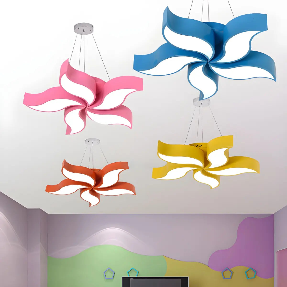 This children's pendant lamp features a modern spiral design and colorful flower shapes that will add endless fun to your child's room. The metal material ensures durability and style, making it a perfect choice for a child's room.
