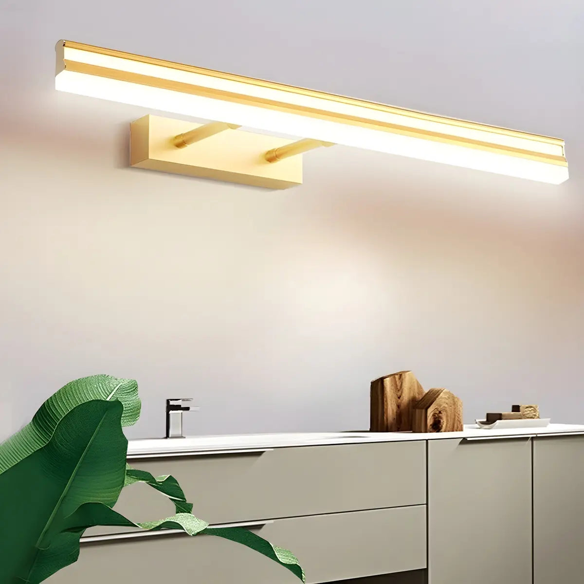 This modern gold LED bathroom light adds a touch of elegance and high-end design to your bathroom. Its simple long strip structure not only saves space but also perfectly matches various decoration styles. The light is waterproof and safe to use in humid bathroom environments. Meanwhile, its energy-saving LED bulb is not only environmentally friendly but also saves you electricity. This light is an ideal choice to enhance your home taste.