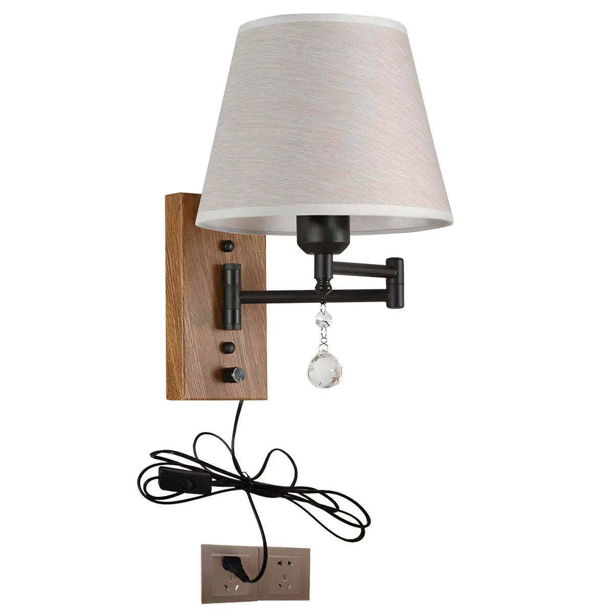 This modern adjustable wooden wall lamp combines beauty and functionality. Its fabric lampshade emits soft light and creates a warm indoor atmosphere. Made of high-quality wood and metal, the wall lamp is sturdy and durable. What's more, there are many other detail designs like a small lighting in its base to brighten your table.