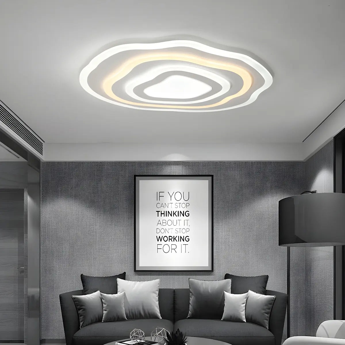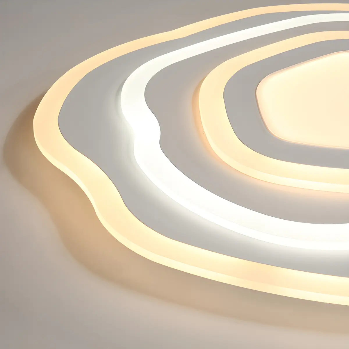 This ceiling lamp is like a work of art, presenting a natural ripple shape. The white surround is like ripples on the lake. It perfectly combines modern design with natural inspiration, bringing a tranquil beauty and enhancing the overall decorative atmosphere of the home.