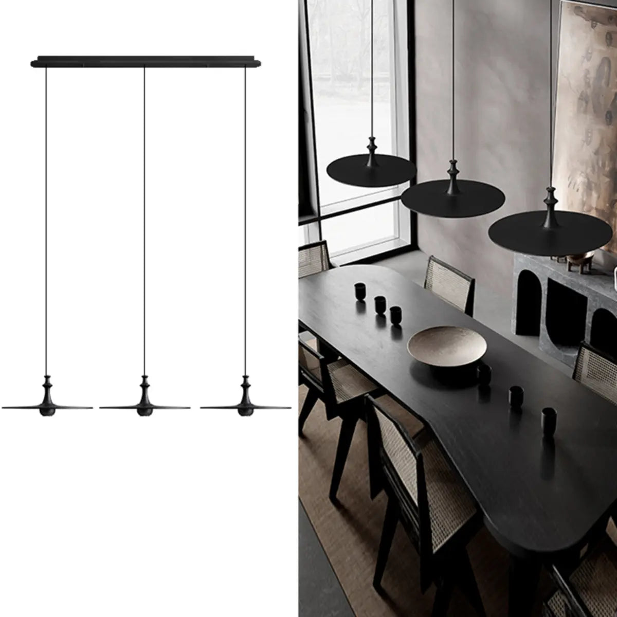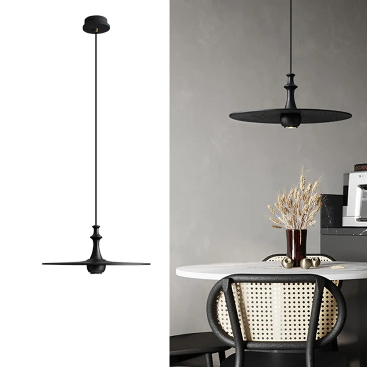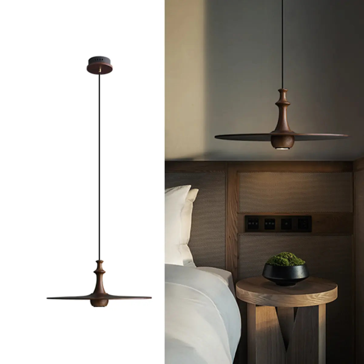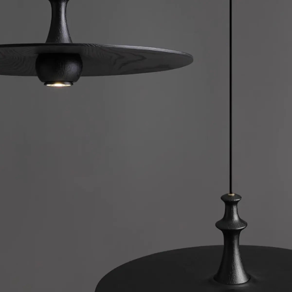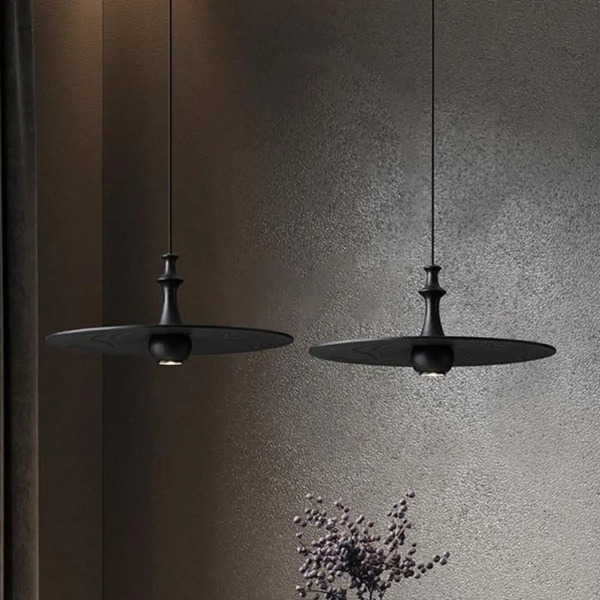 ZOWALA - Modern Walnut 2-Light Black Disc UFO Pendant Light