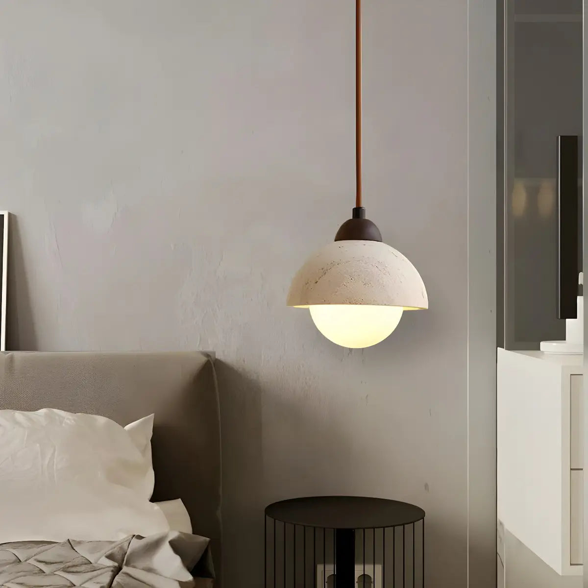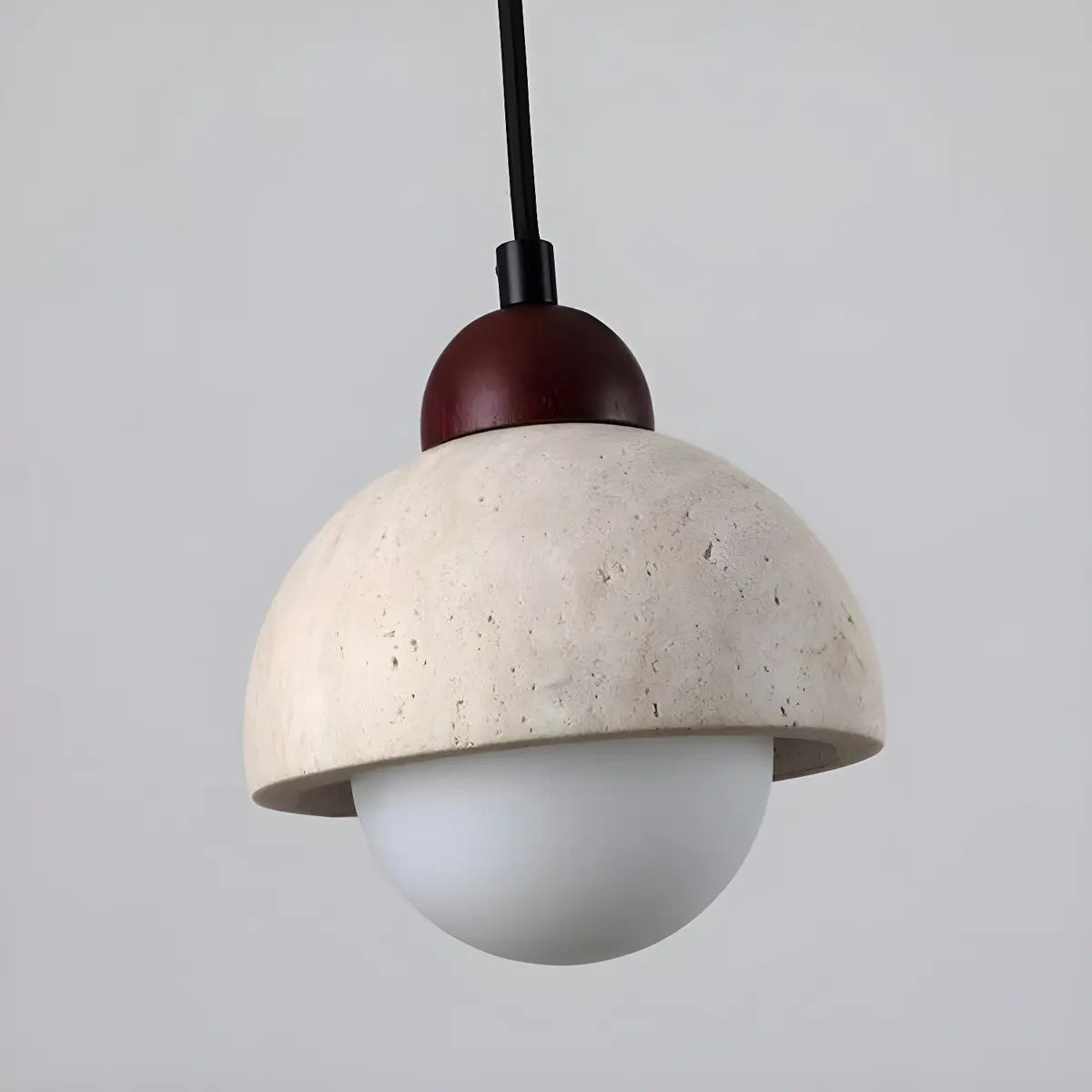 ZOWALA - Modern Walnut Beige Stone Glass Globe Pendant Light