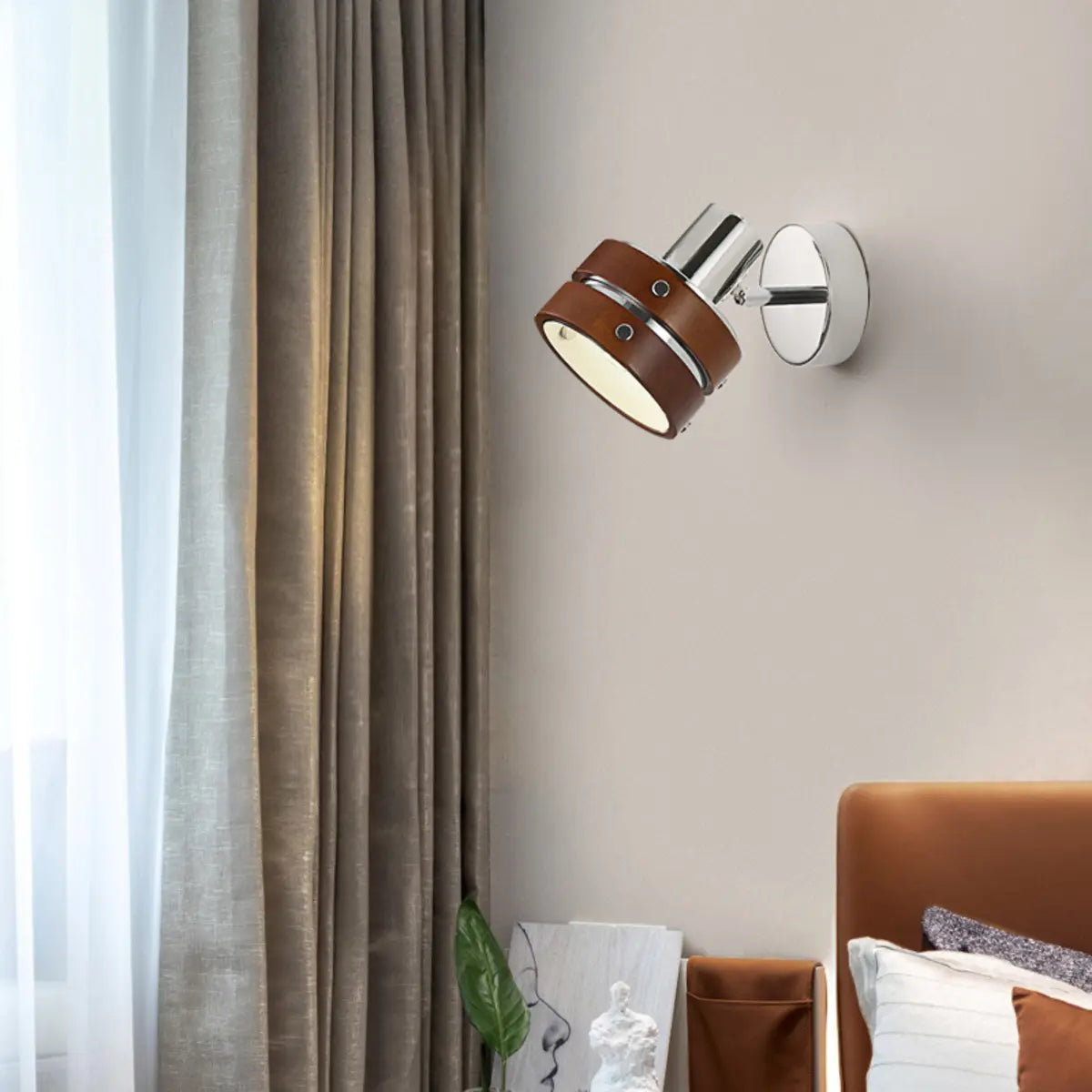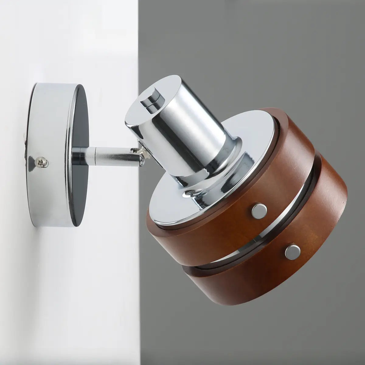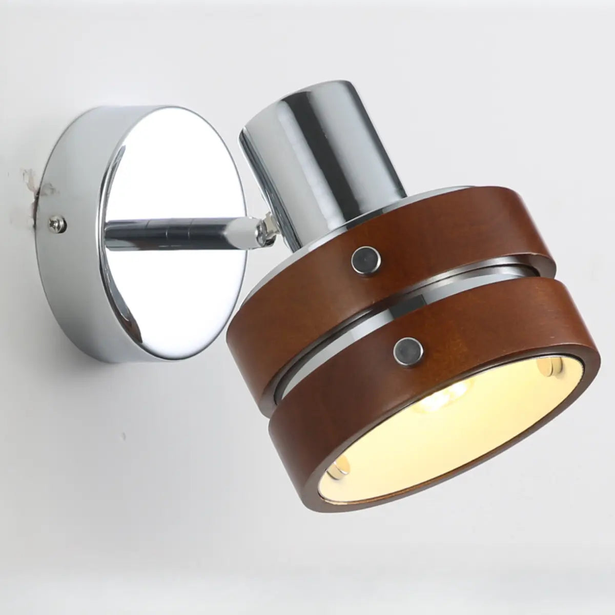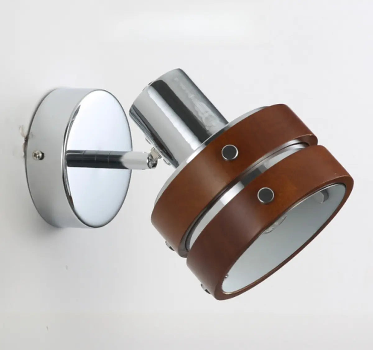 ZOWALA - Modern Walnut Chrome Round Wall Light