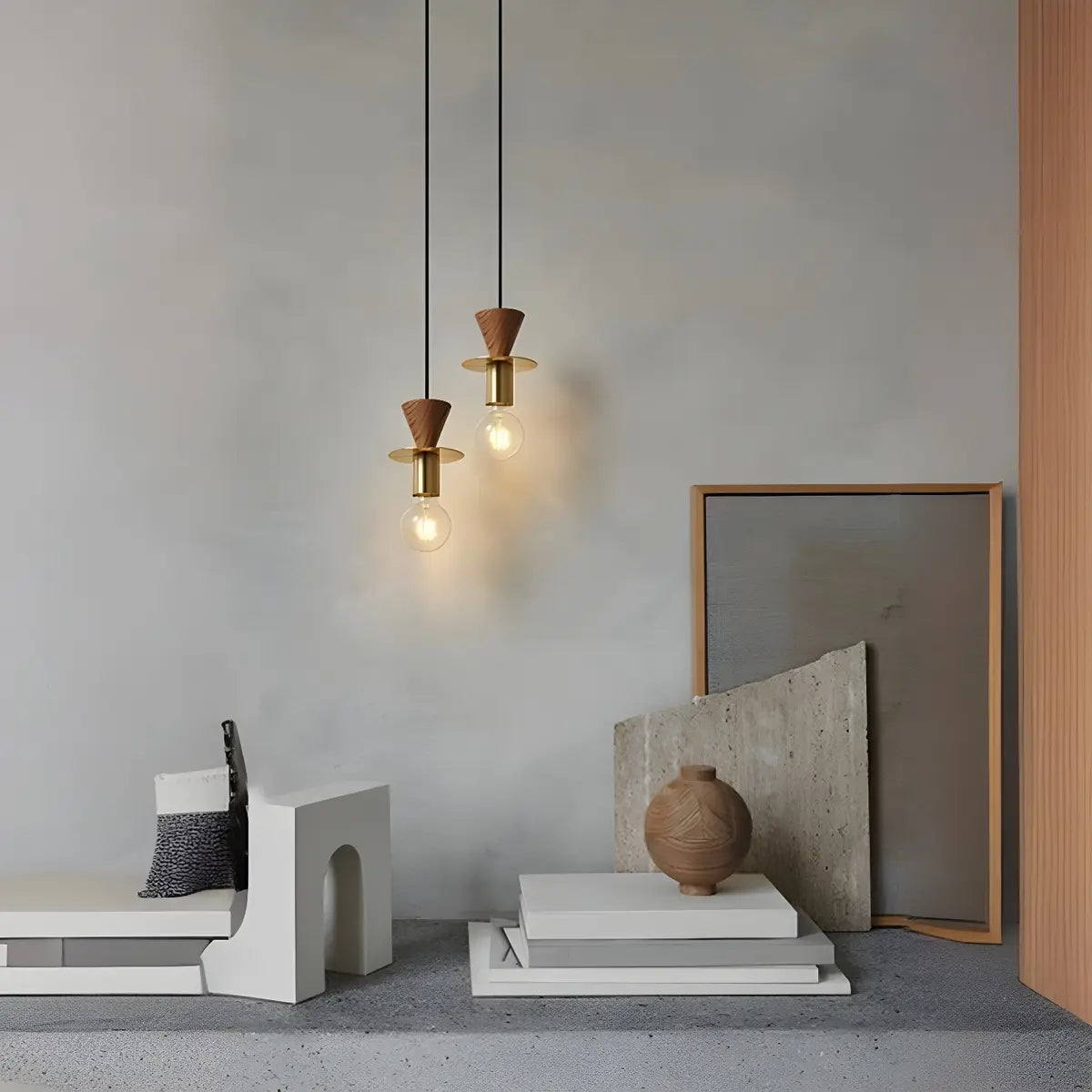 ZOWALA - Modern Walnut Gold Geometric Bulb Pendant Light