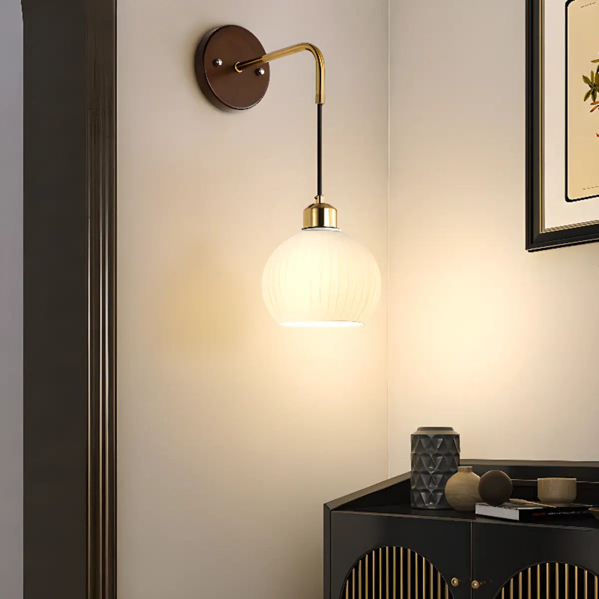 ZOWALA - Modern Walnut Gold Ribbed Glass Dome Wall Sconce