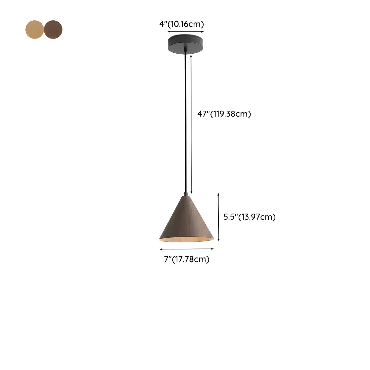 ZOWALA - Modern Walnut Iron Cone Pendant Light