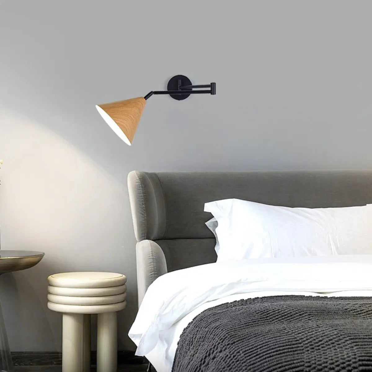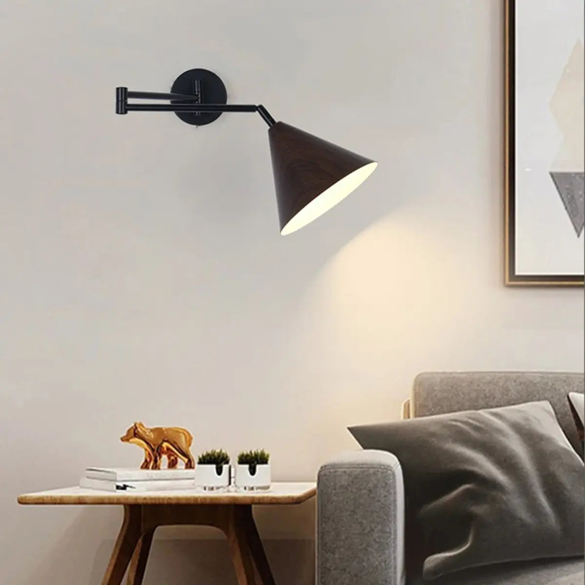 ZOWALA - Modern Walnut Wood Cone Swing Arm Wall Lamp
