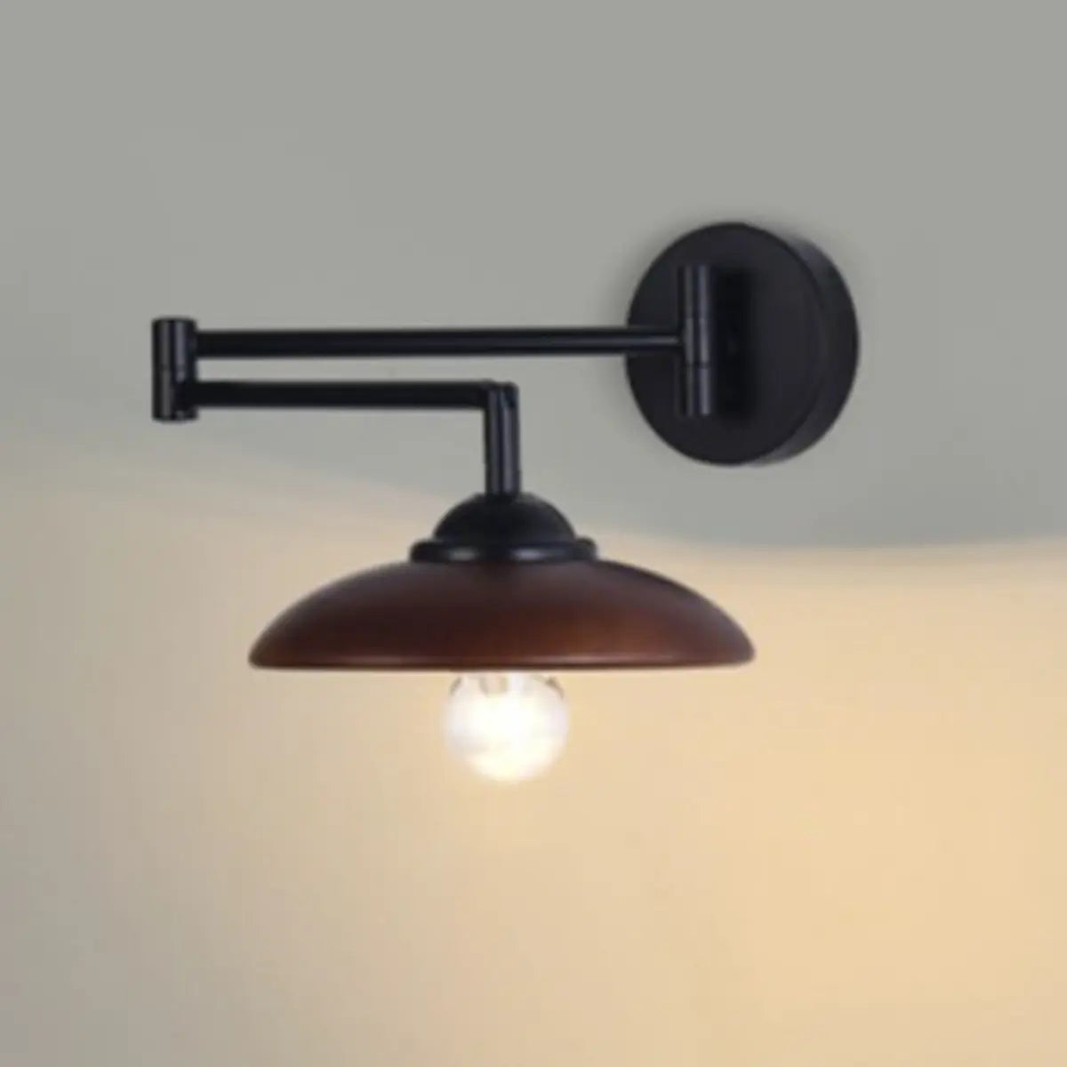 This modern wall lamp features an elegant swing arm design and combines a walnut colour with a high-quality iron shade to blend perfectly into any interior.