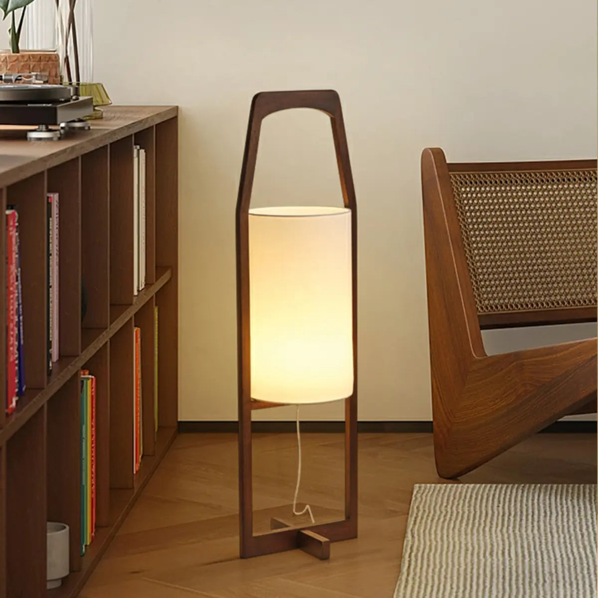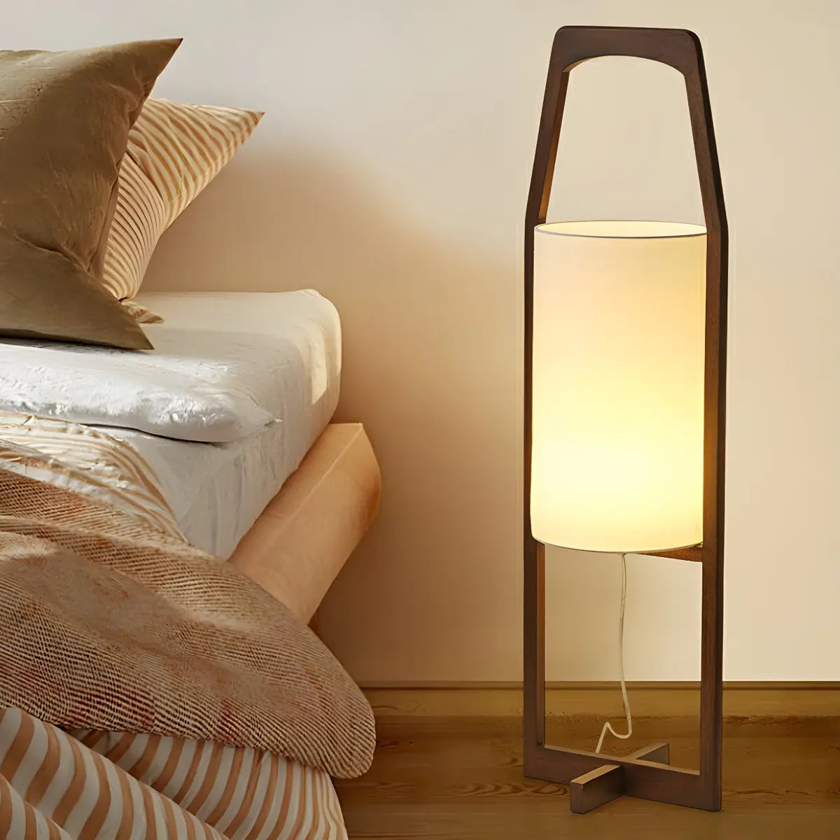 ZOWALA - Modern Walnut Wood Fabric Barrel Floor Lamp
