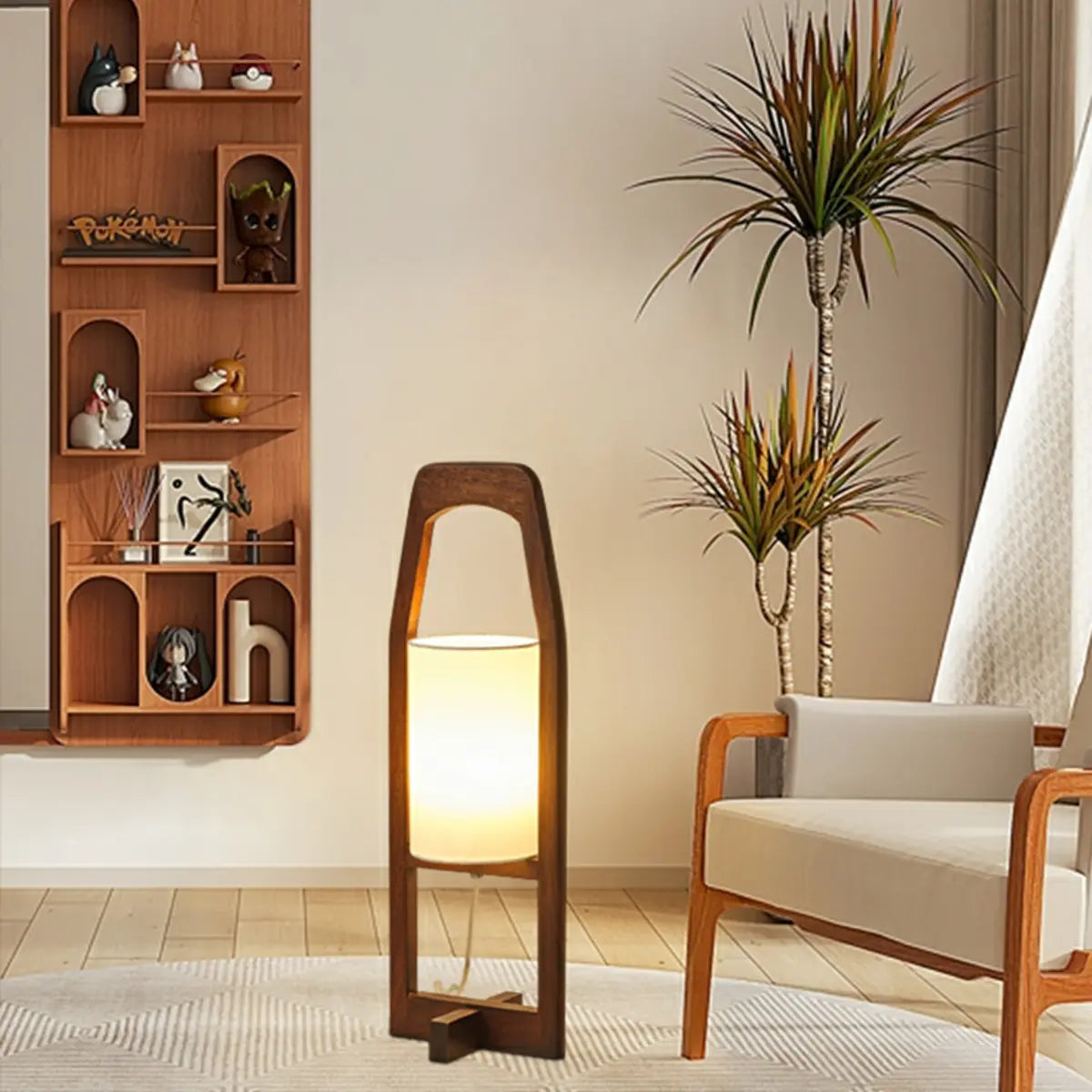 This modern style floor lamp, made of high-quality wood, shows the harmonious beauty of modern and nature and is a highlight of the home space.