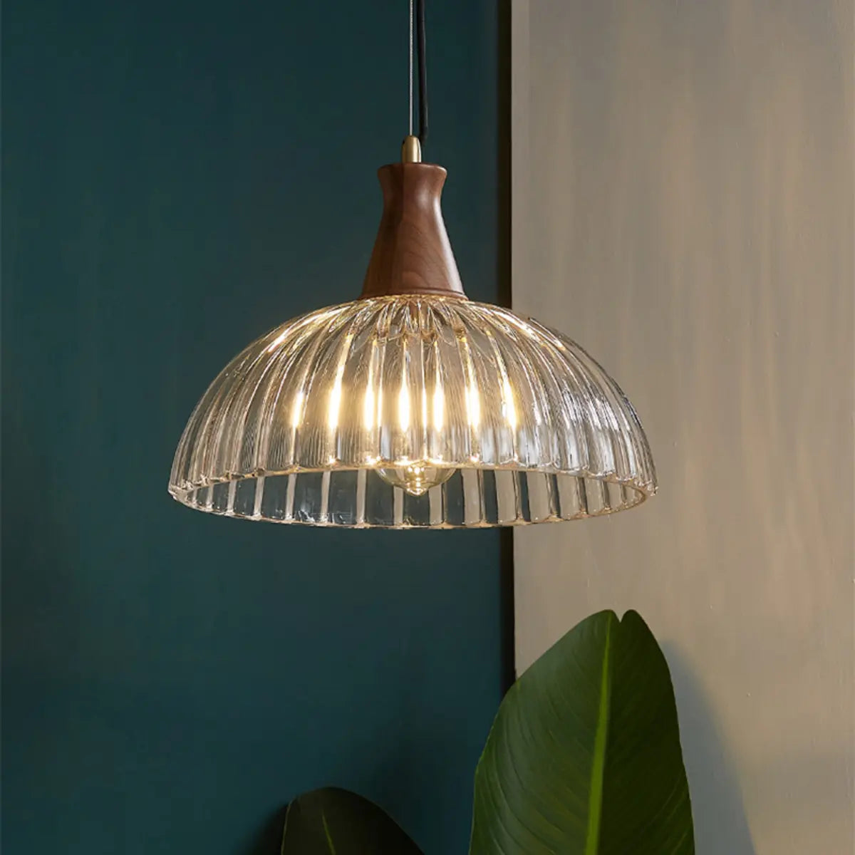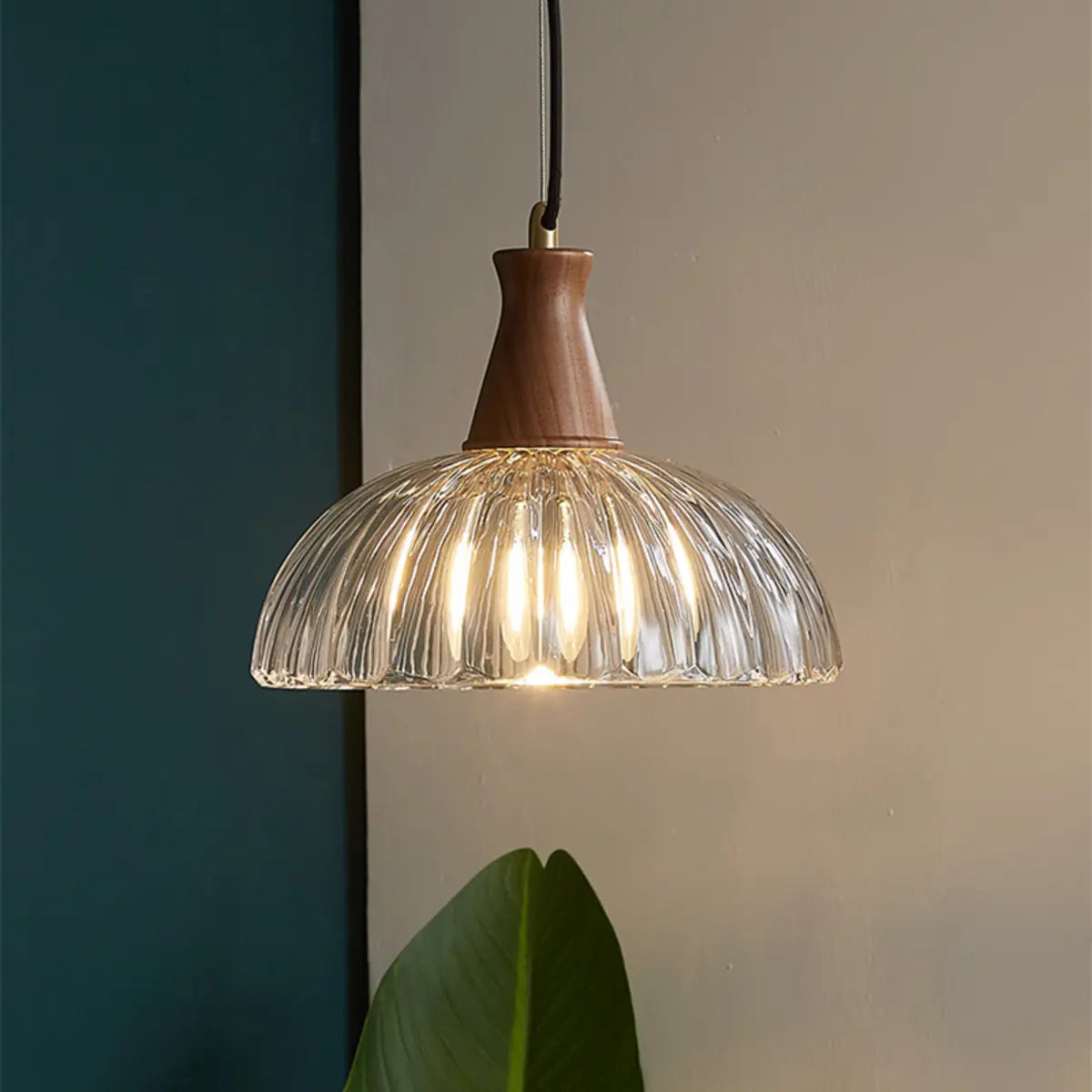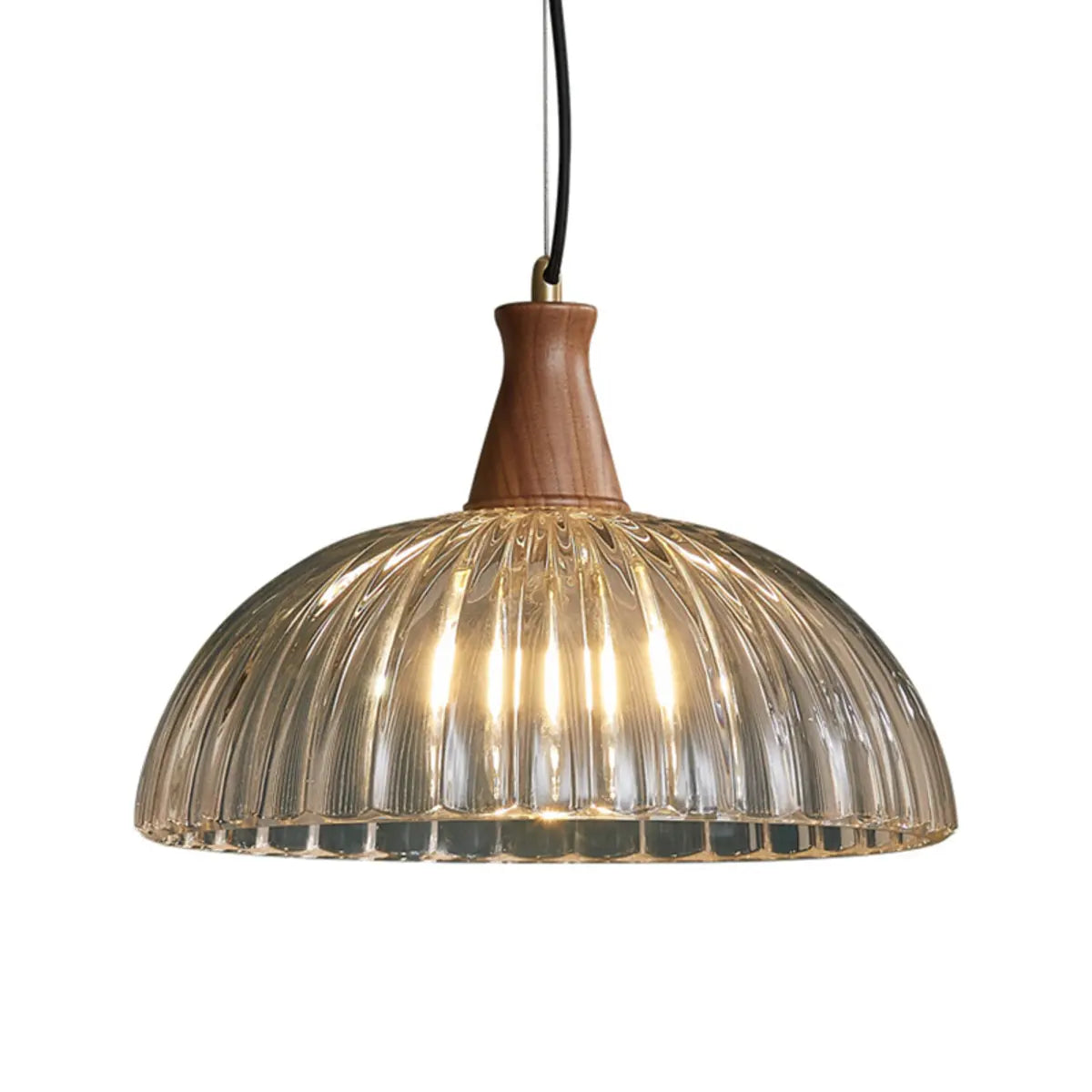 ZOWALA - Modern Wood Ribbed Glass Dome Pendant Light