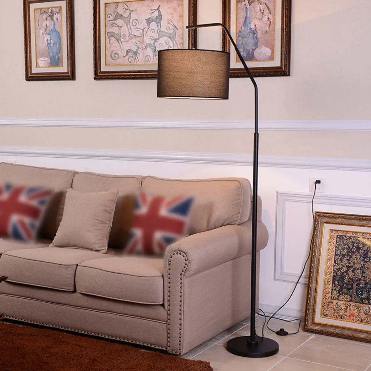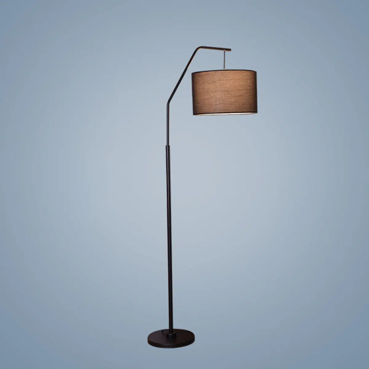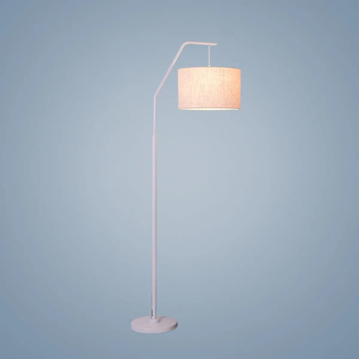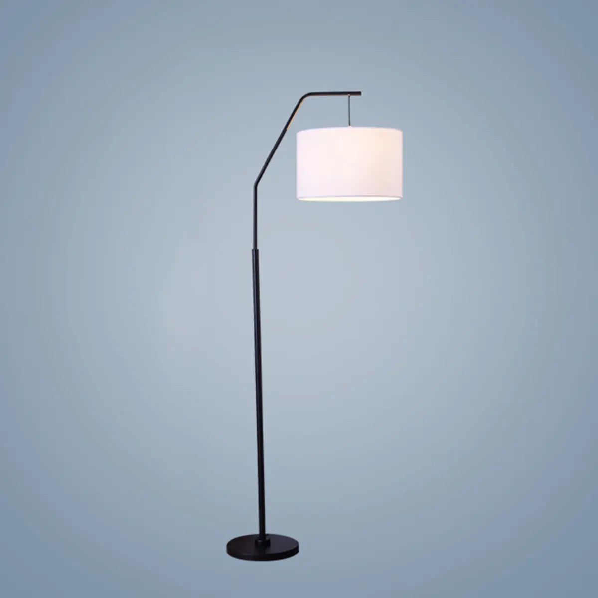 This floor lamp features a modern and simple design, with a black metal stand and white fabric lampshade, perfectly combining to add a stylish touch to your space.