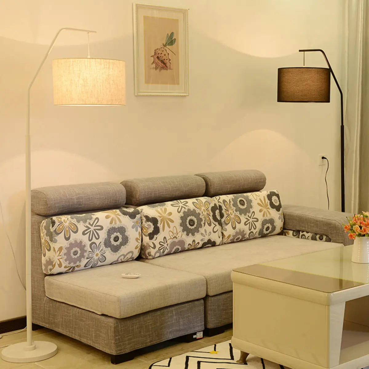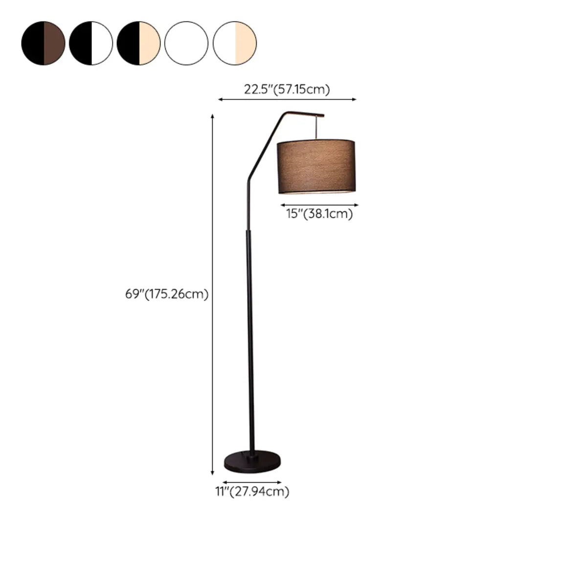 ZOWALA - Modern White Fabric Drum Black Floor Lamp