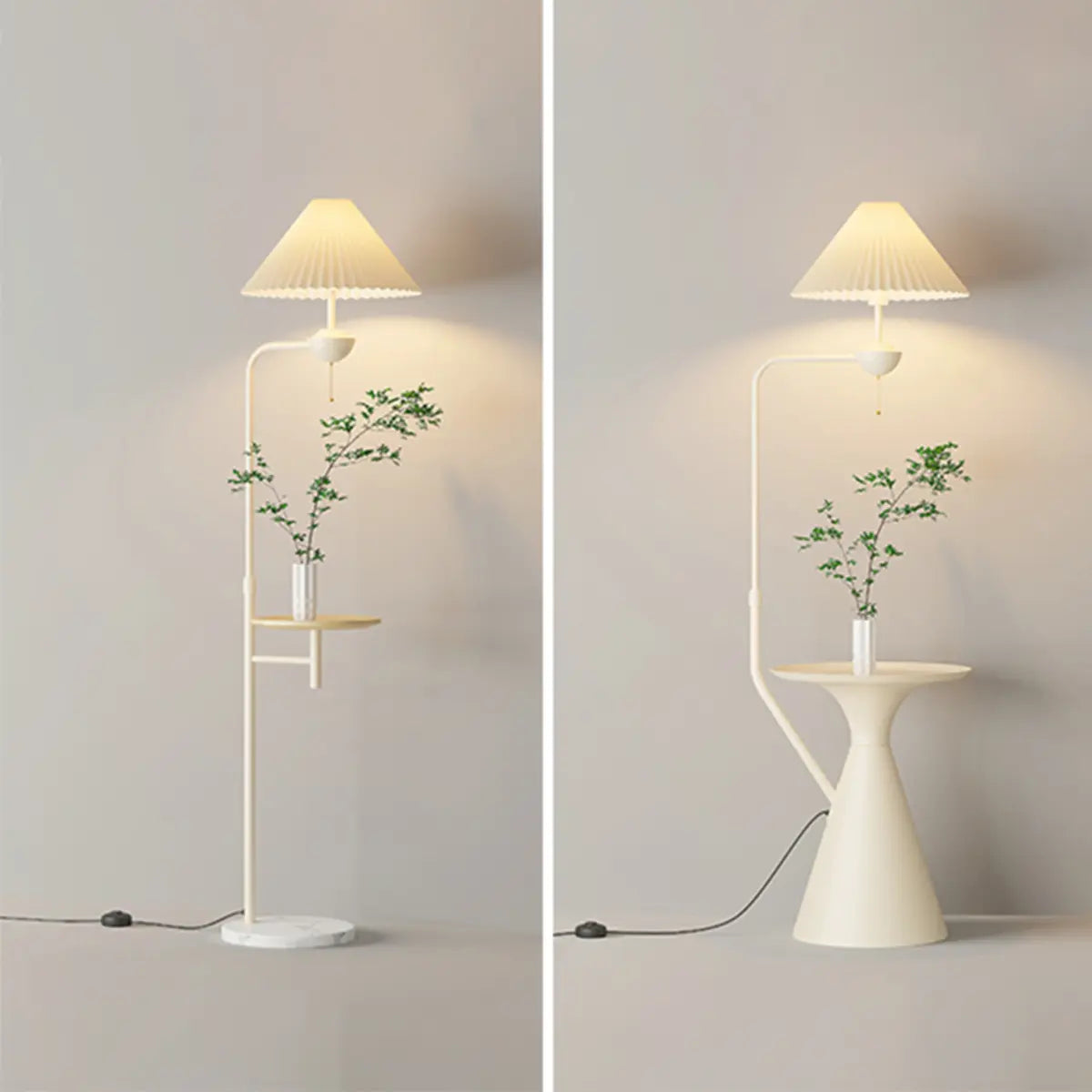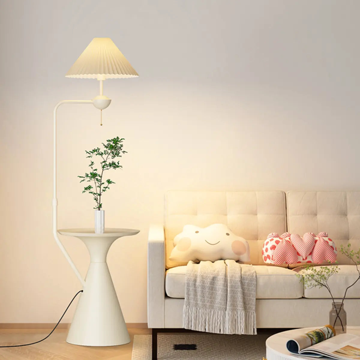 ZOWALA - Modern White Fabric Side Table Adjustable Floor Lamp