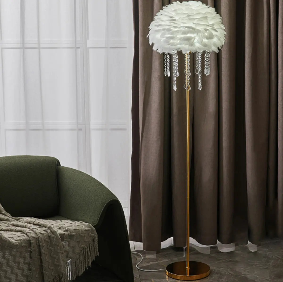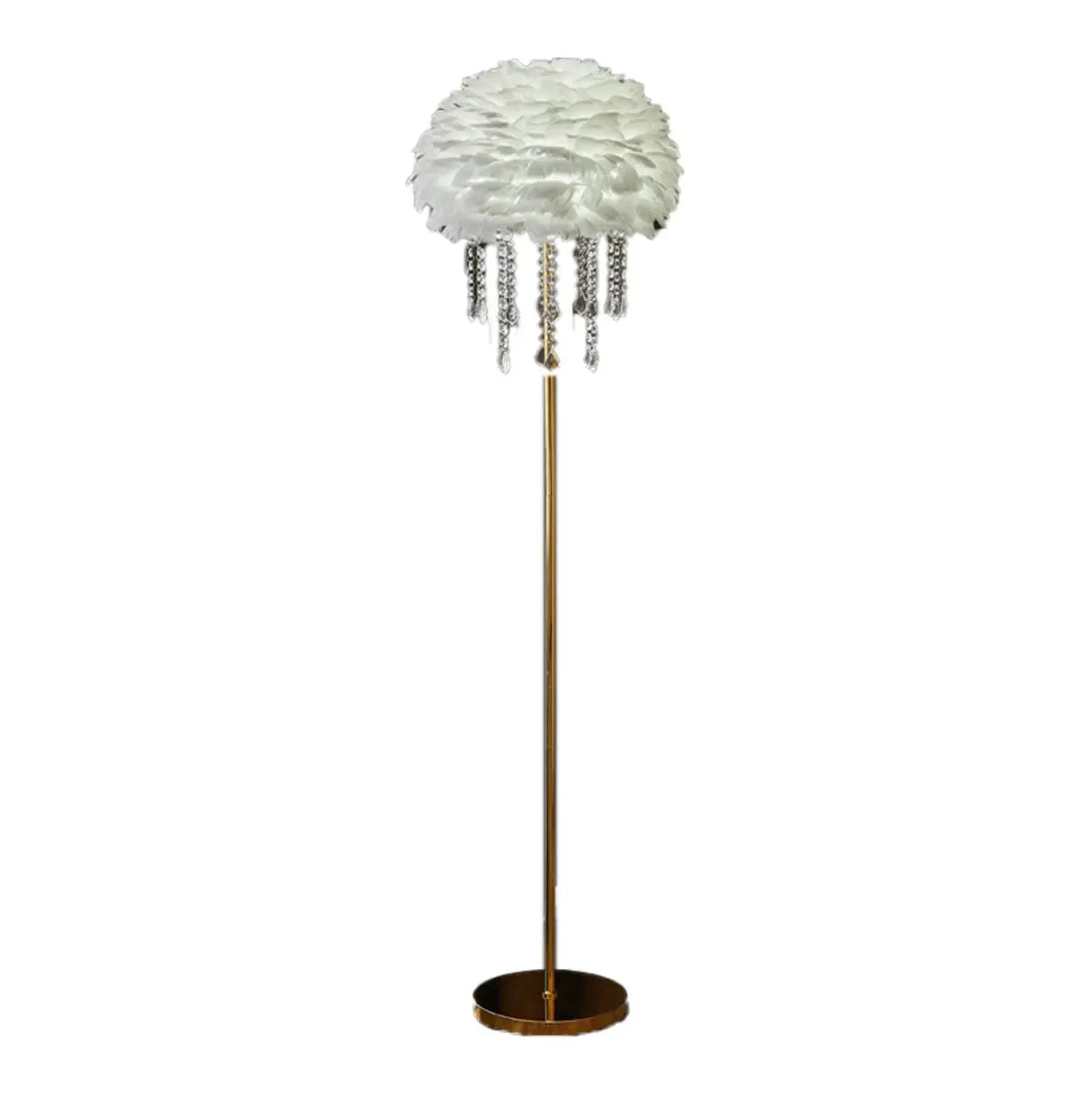This modern feather crystal floor lamp is a beautiful and practical home decoration. Its exquisite design and multifunctional features make it an ideal choice for home lighting.