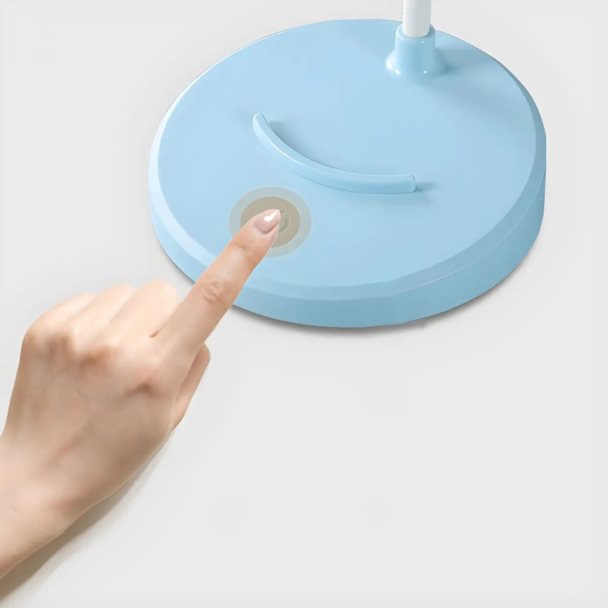 - Made of high-quality plastic, with white, blue and pink options, the table lamp is compatible with a variety of home styles and adds color to the space.