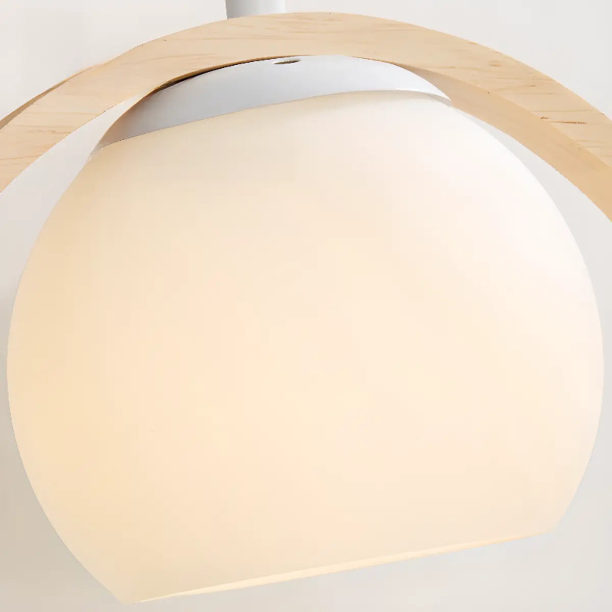 This modern minimalist style chandelier has a unique appearance, with a wooden ring surrounding the milky white spherical glass lampshade, presenting a clean and simple natural beauty. A bird decoration is hung in the center of the lampshade, adding a few vivid and interesting elements, and making the overall design more layered. Whether it is matched with wooden furniture or a modern minimalist style home space, it can play its decorative highlights well.