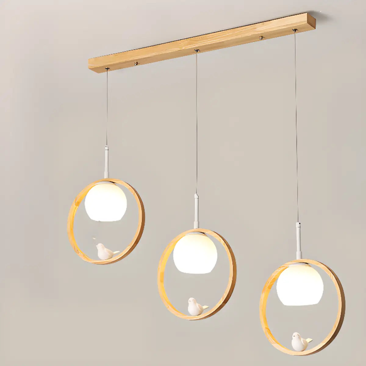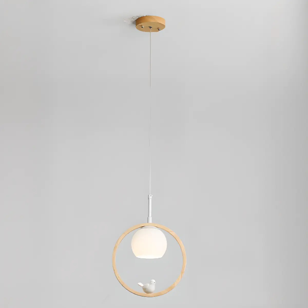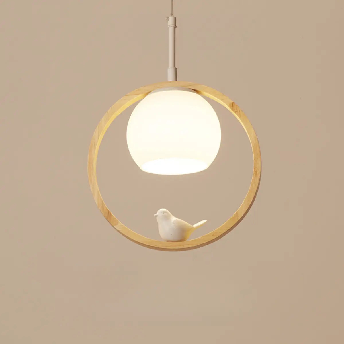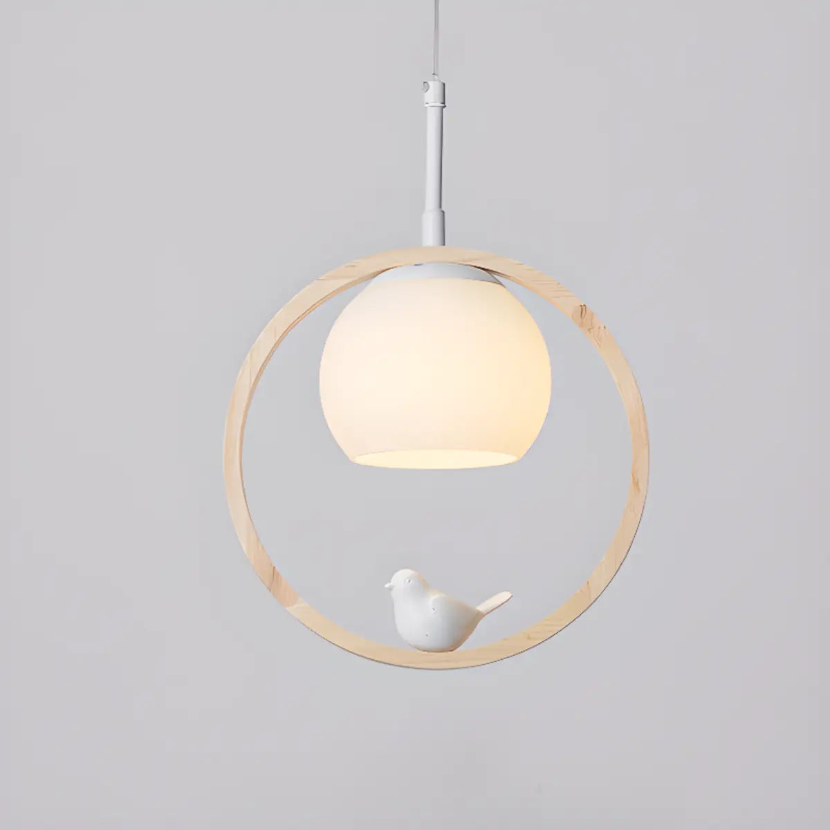 ZOWALA - Modern Wood Ring Bird Globe Pendant Light
