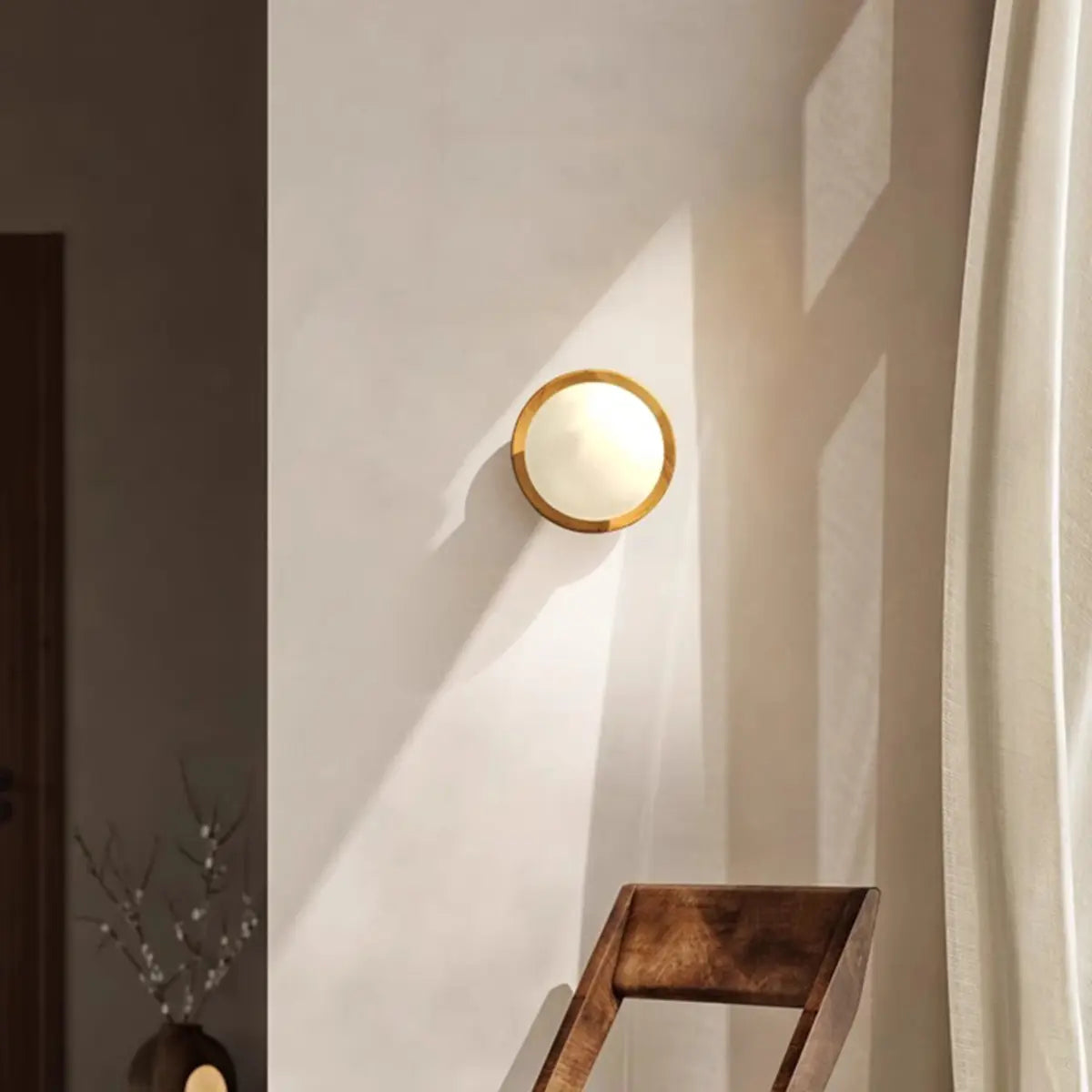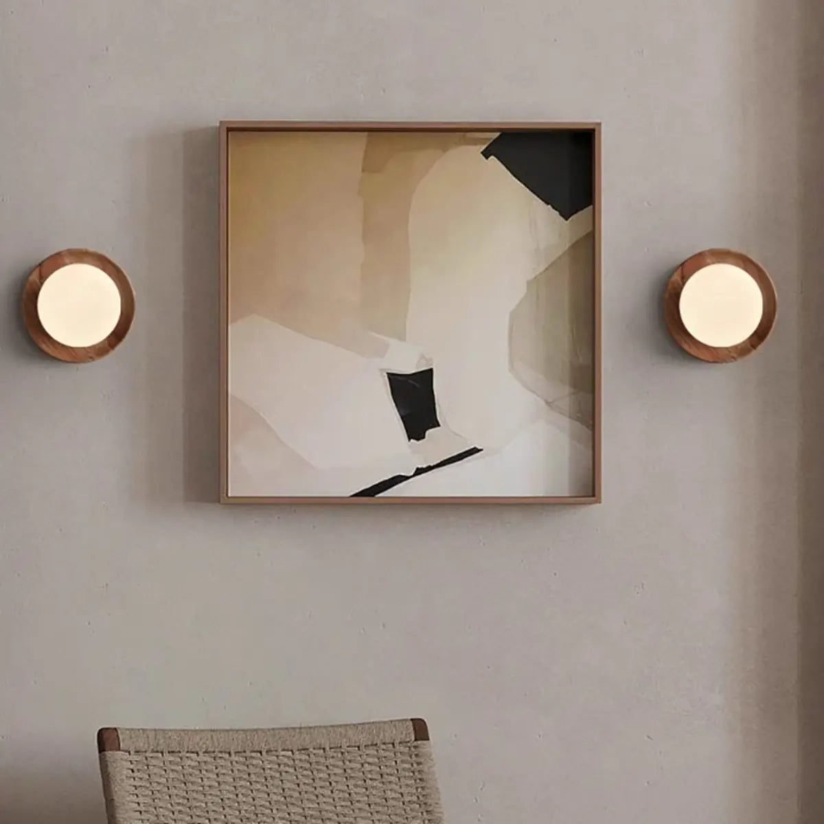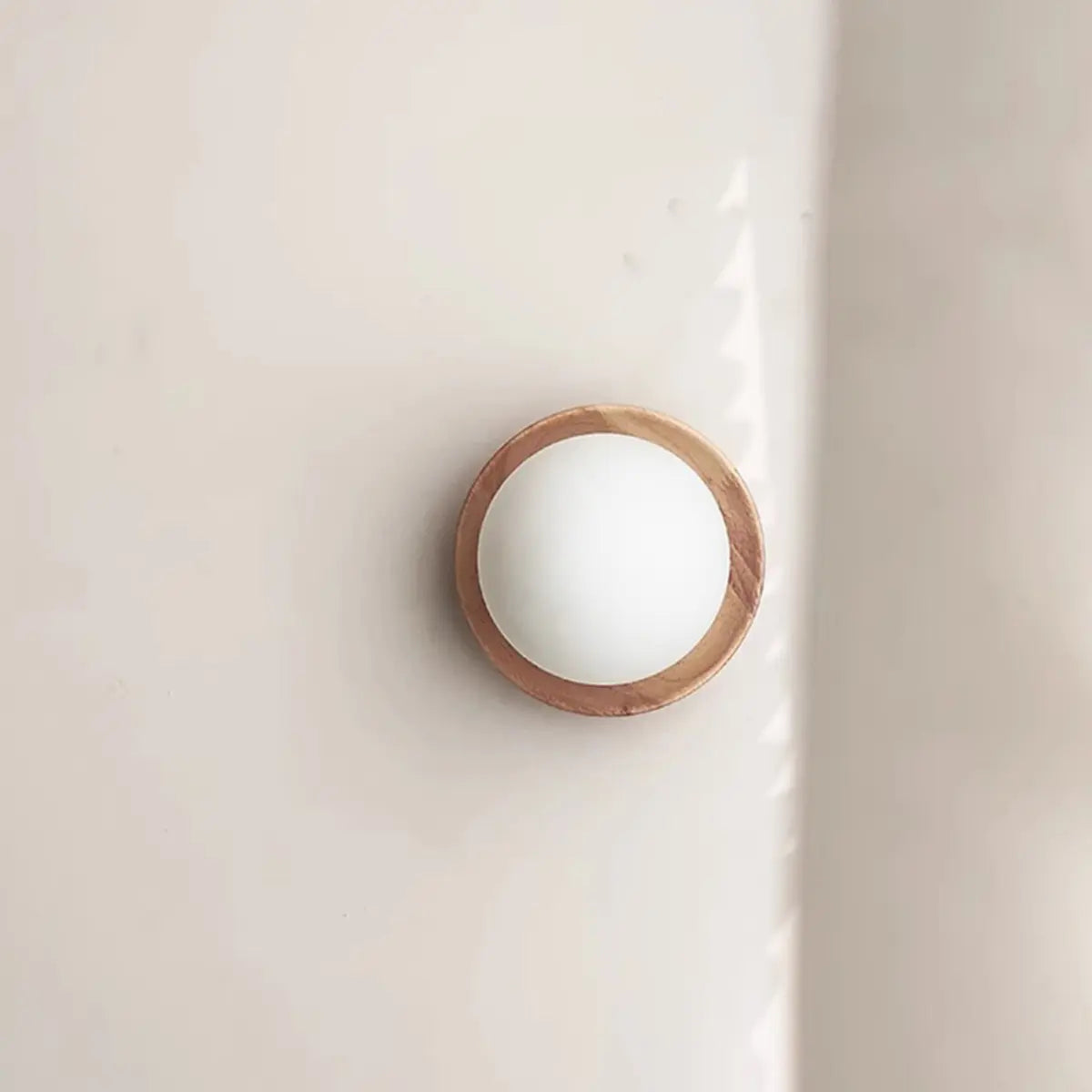 ZOWALA - Modern Wood Round White Glass Globe Wall Sconce