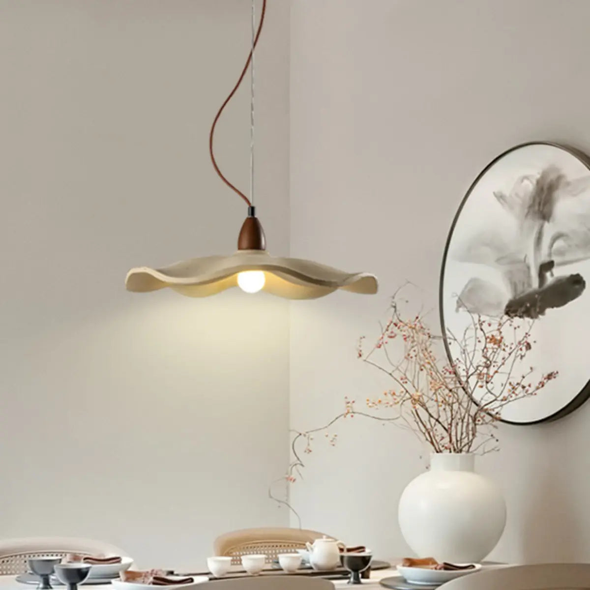 ZOWALA - Modern Wood Wave Concrete Pendant Light