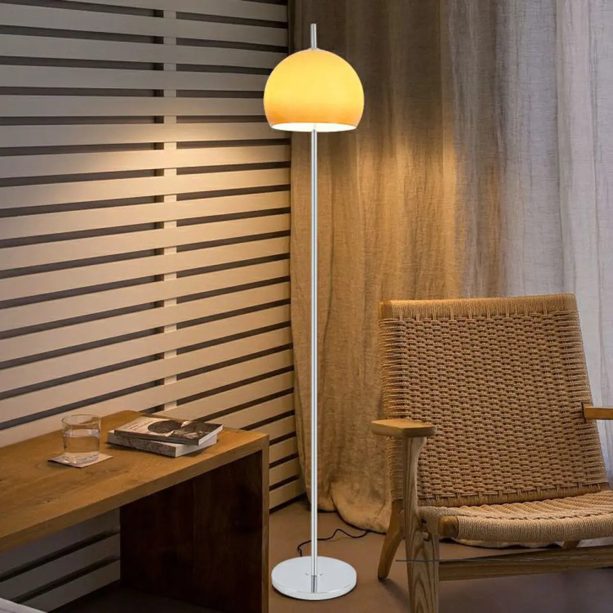 This ZOWALA modern floor lamp will add a contemporary and warm touch to your home with its elegant yellow dome shade and metal column design.