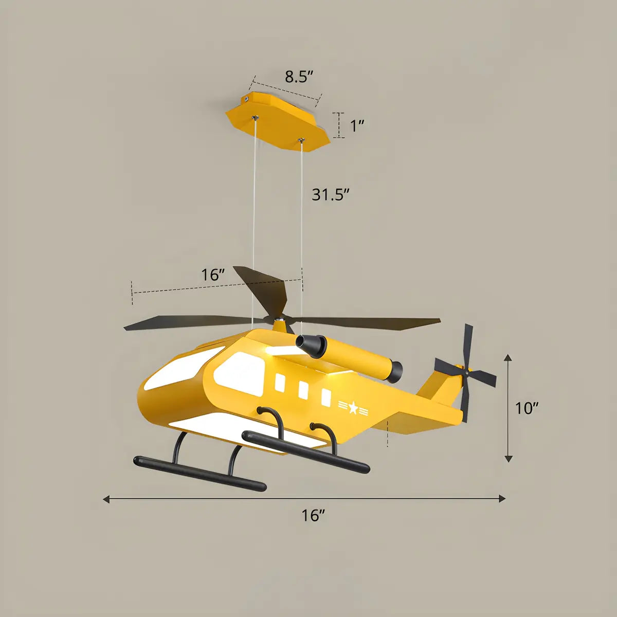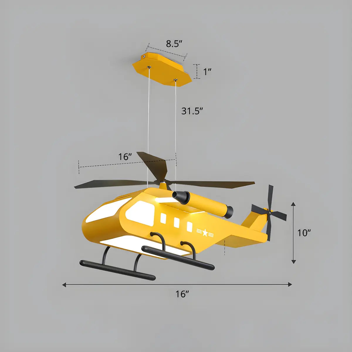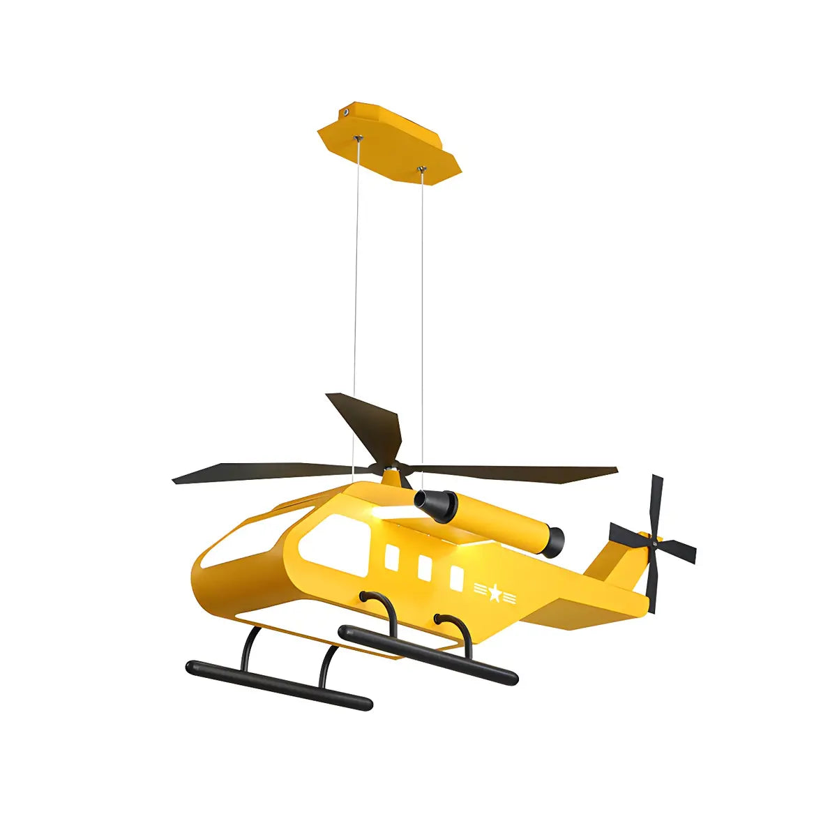 Designed specifically for a child's room, this modern yellow helicopter pendant light offers a fun and creative lighting solution.