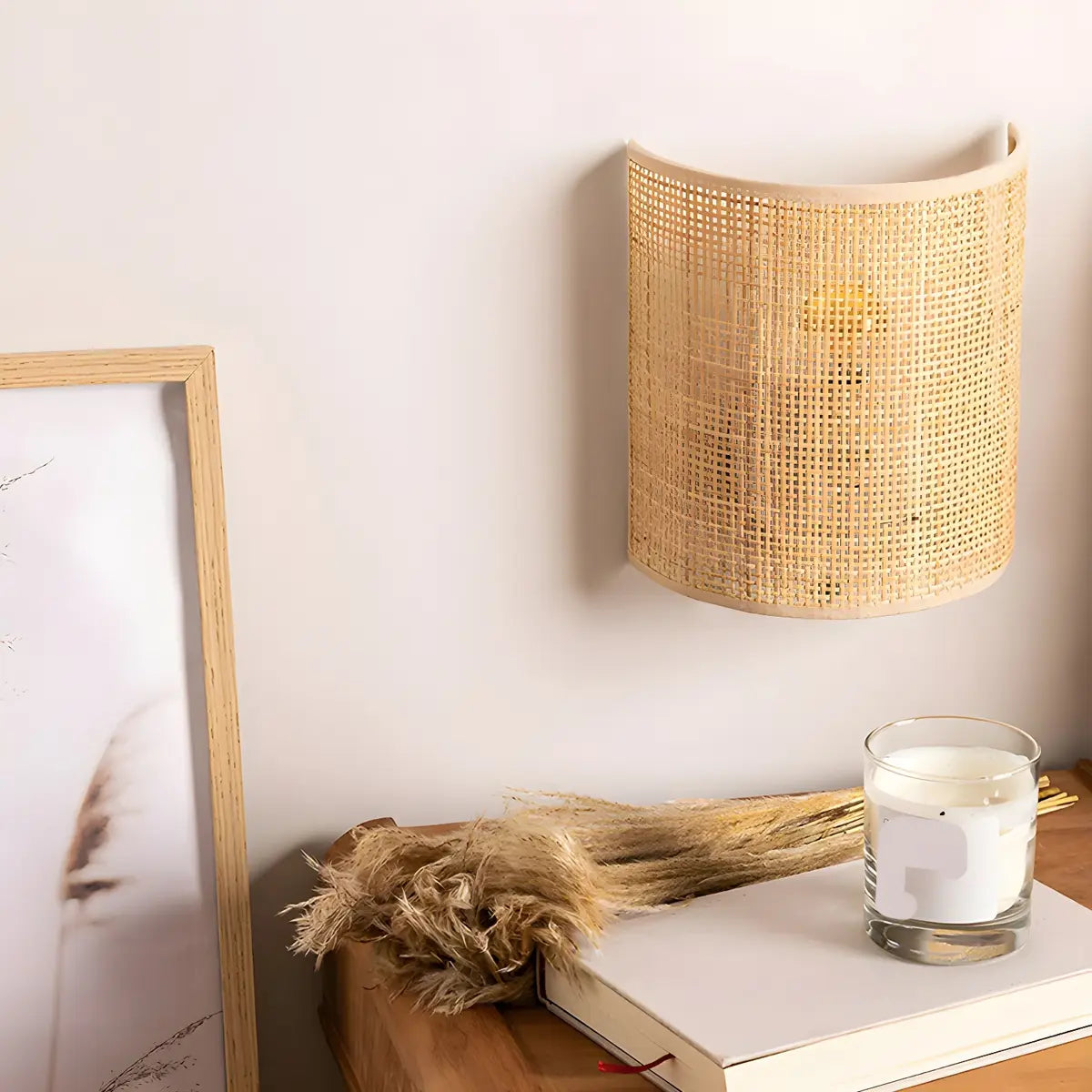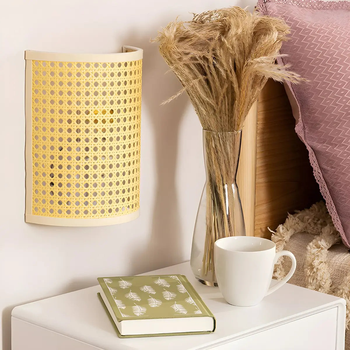 ZOWALA - Modern Yellow Rattan Cylinder Wall Sconce