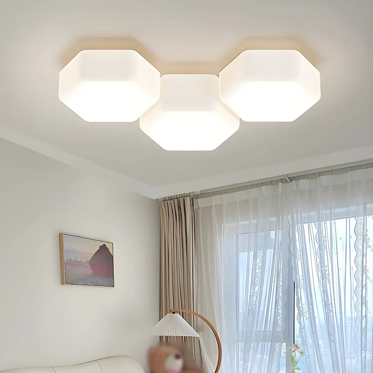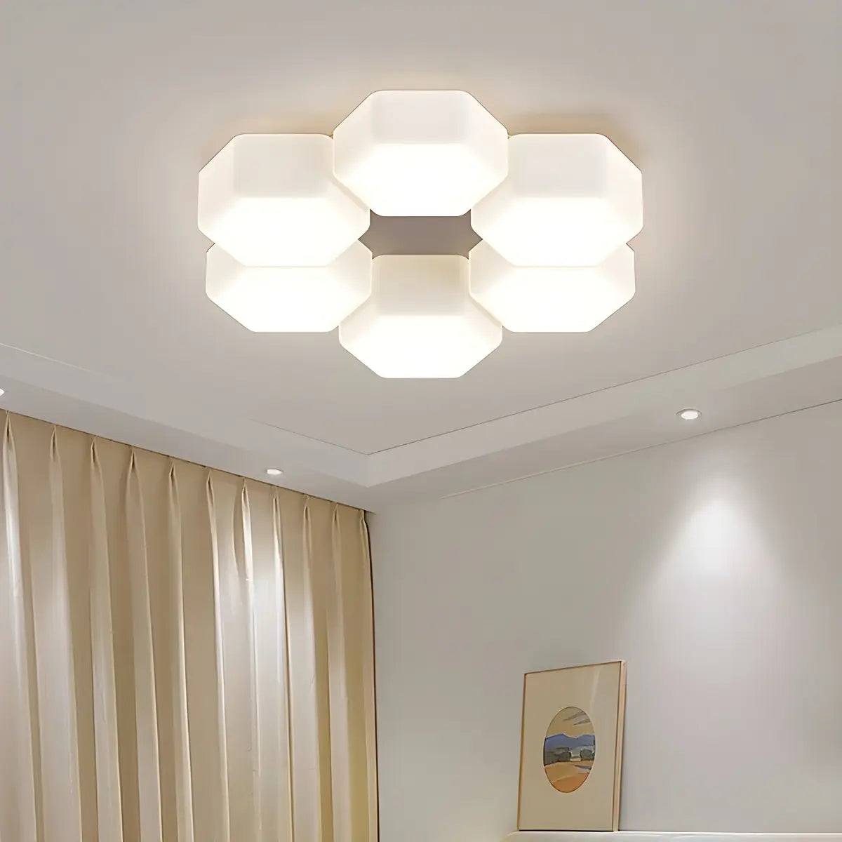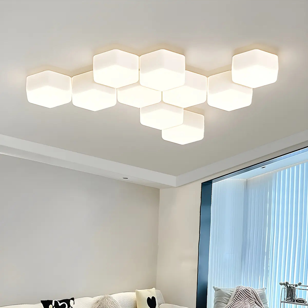 This geometric white hexagonal recessed ceiling light, with its unique modular design, adds a touch of modern art to your living room. The pure white tone of the lamp is perfectly integrated with the simple geometric shape, giving the space a smooth and elegant visual effect, making every room glow with a unique artistic atmosphere, making people linger.