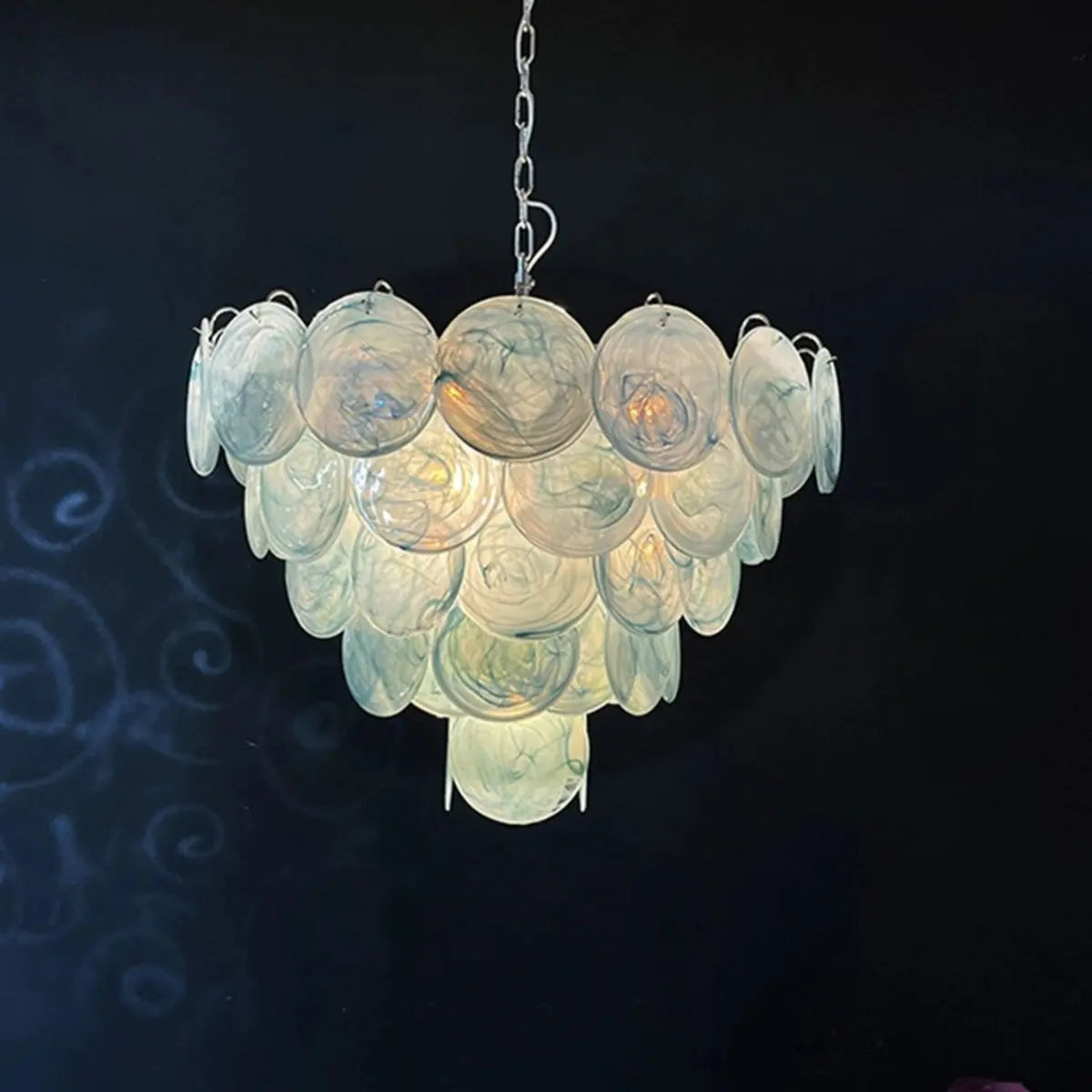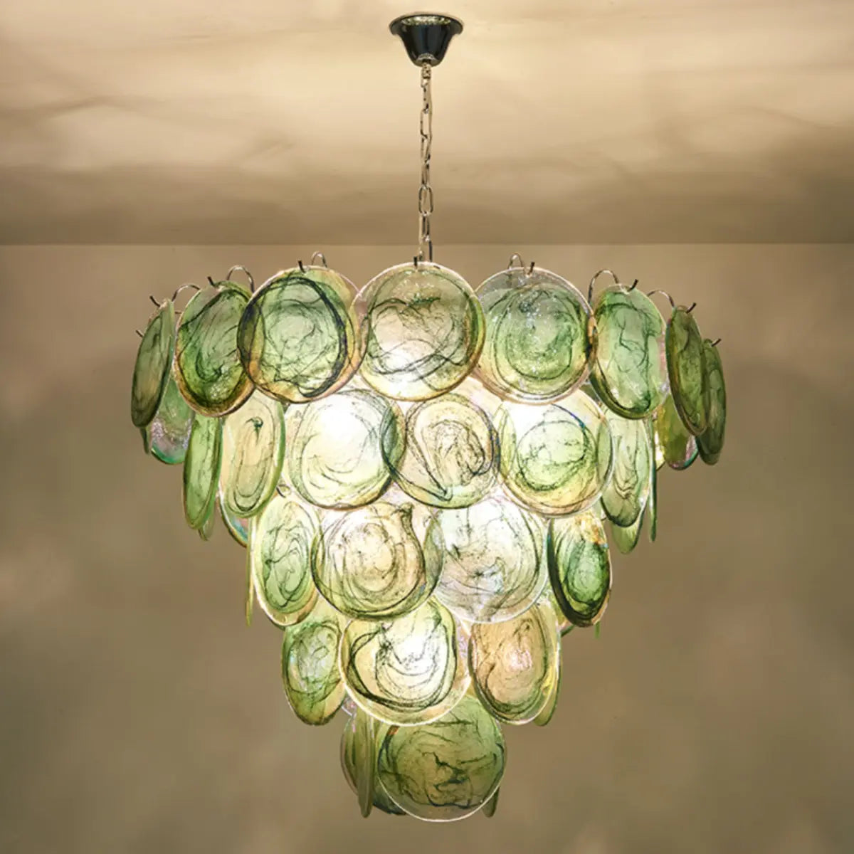 ZOWALA - Art Deco Green Tier Glass Disc Chandelier