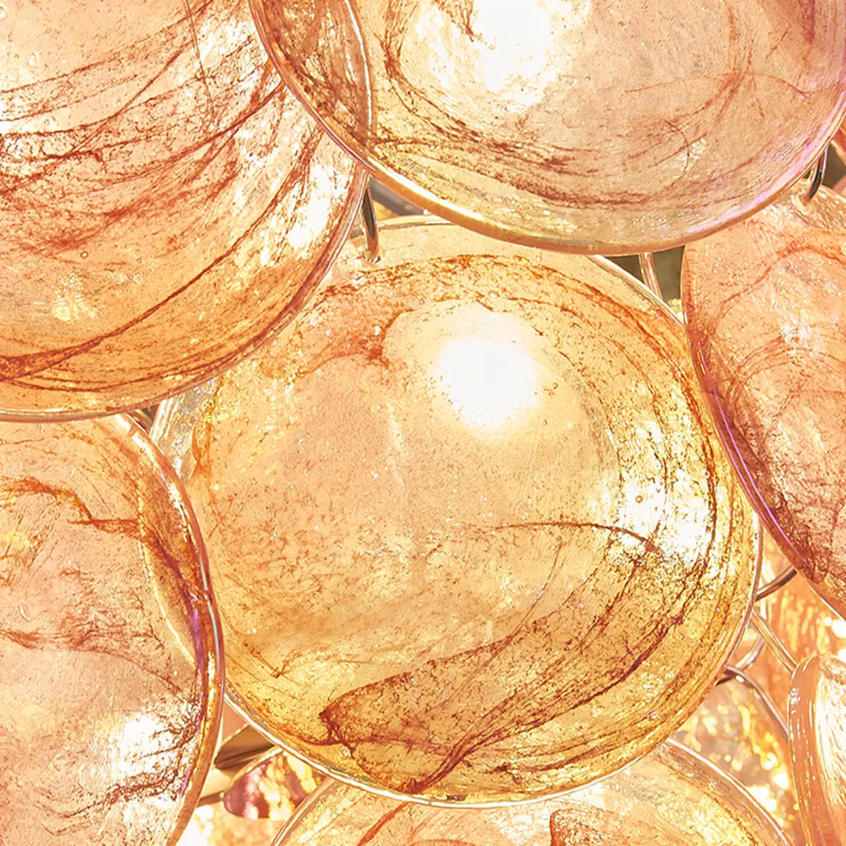 Exuding a unique vintage appeal, this multi-layered Art Deco chandelier features translucent crackled glass disc pendants for a chic look.