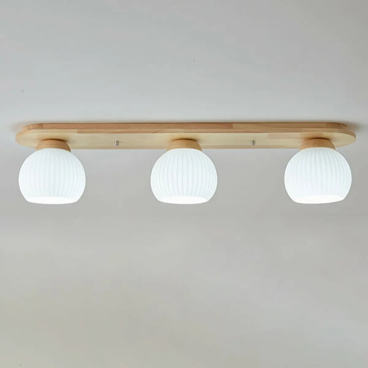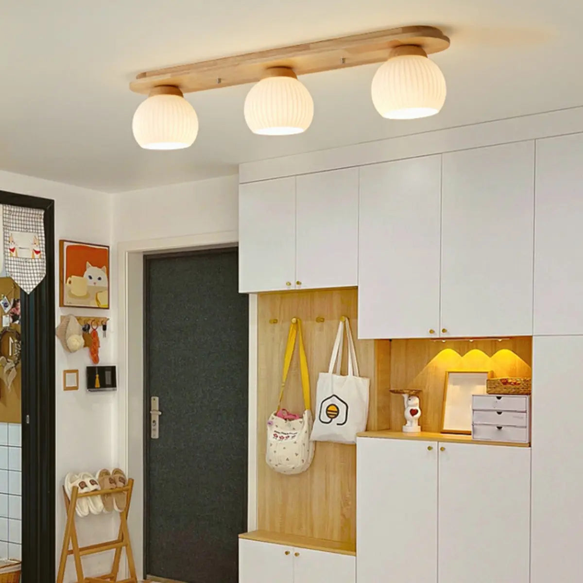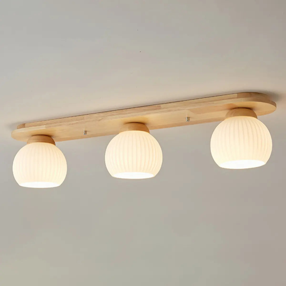 ZOWALA - Natural Wood Dome Glass 3-Light Flush Mount Light