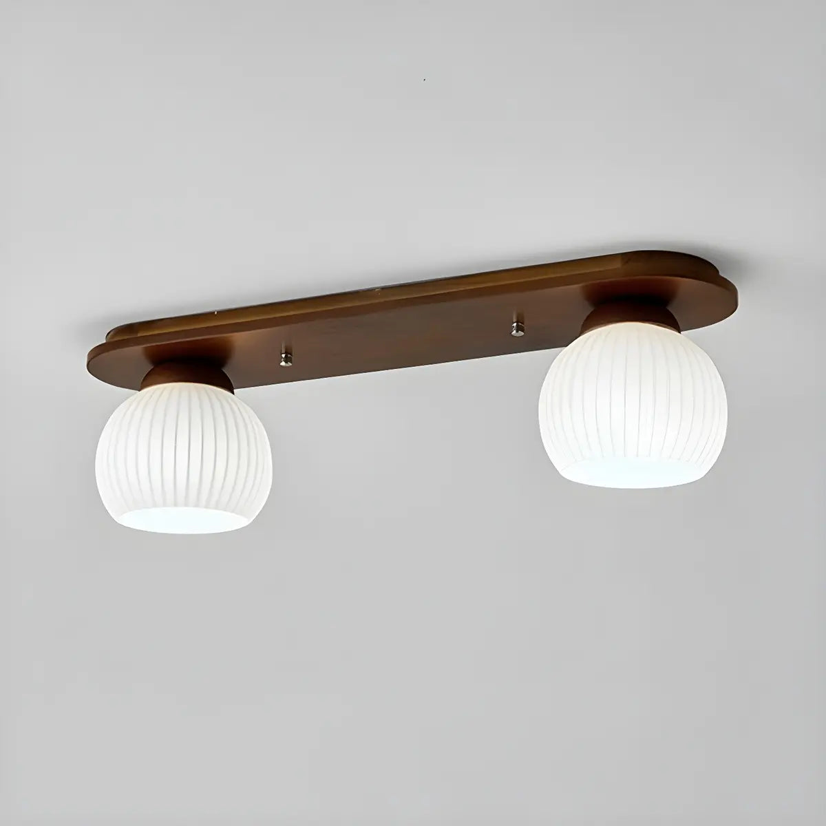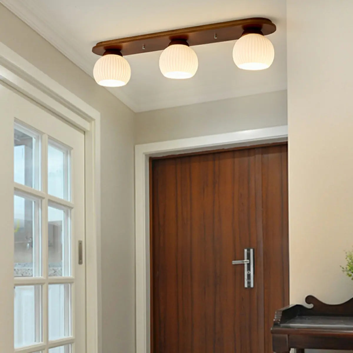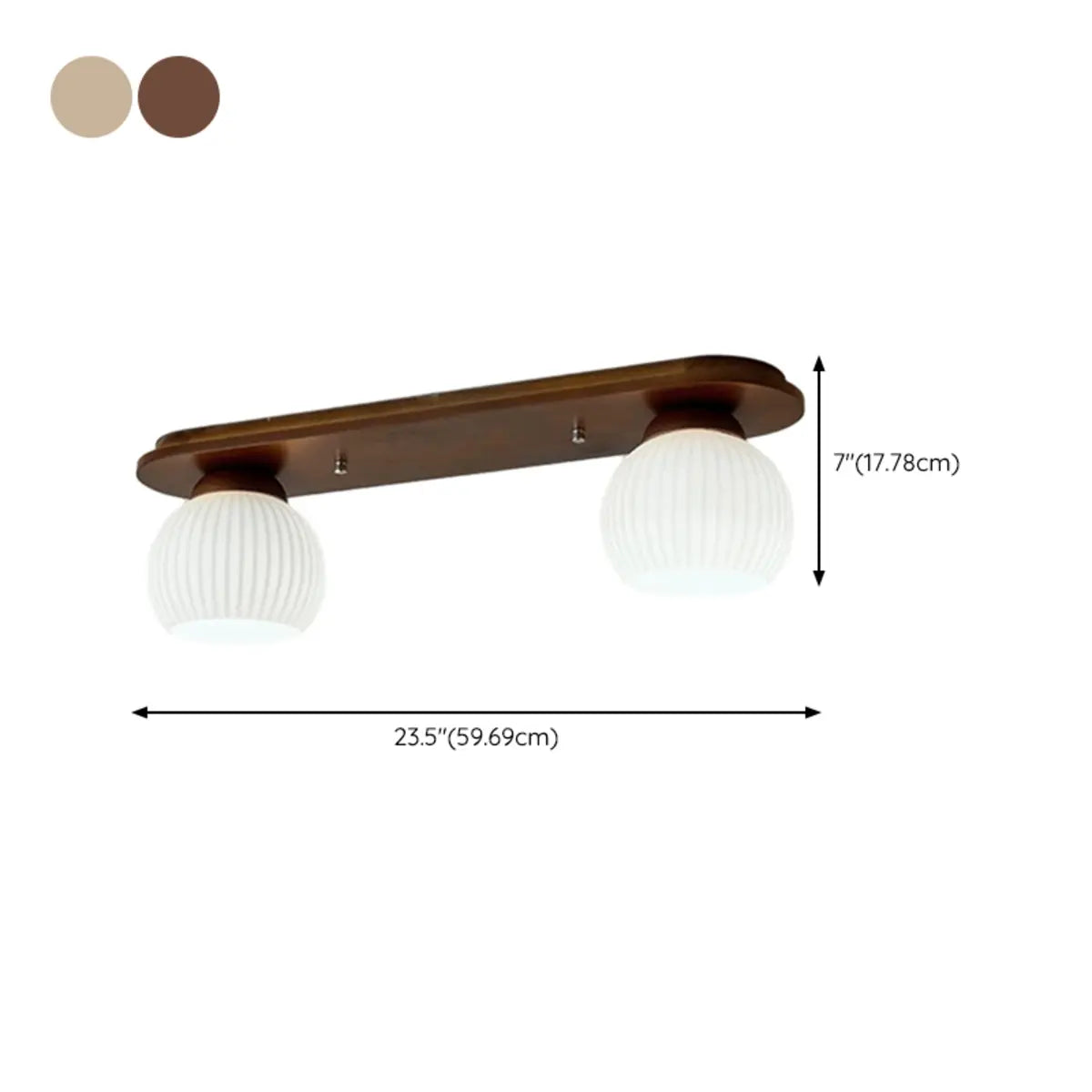 ZOWALA - Natural Wood Dome Glass 3-Light Flush Mount Light