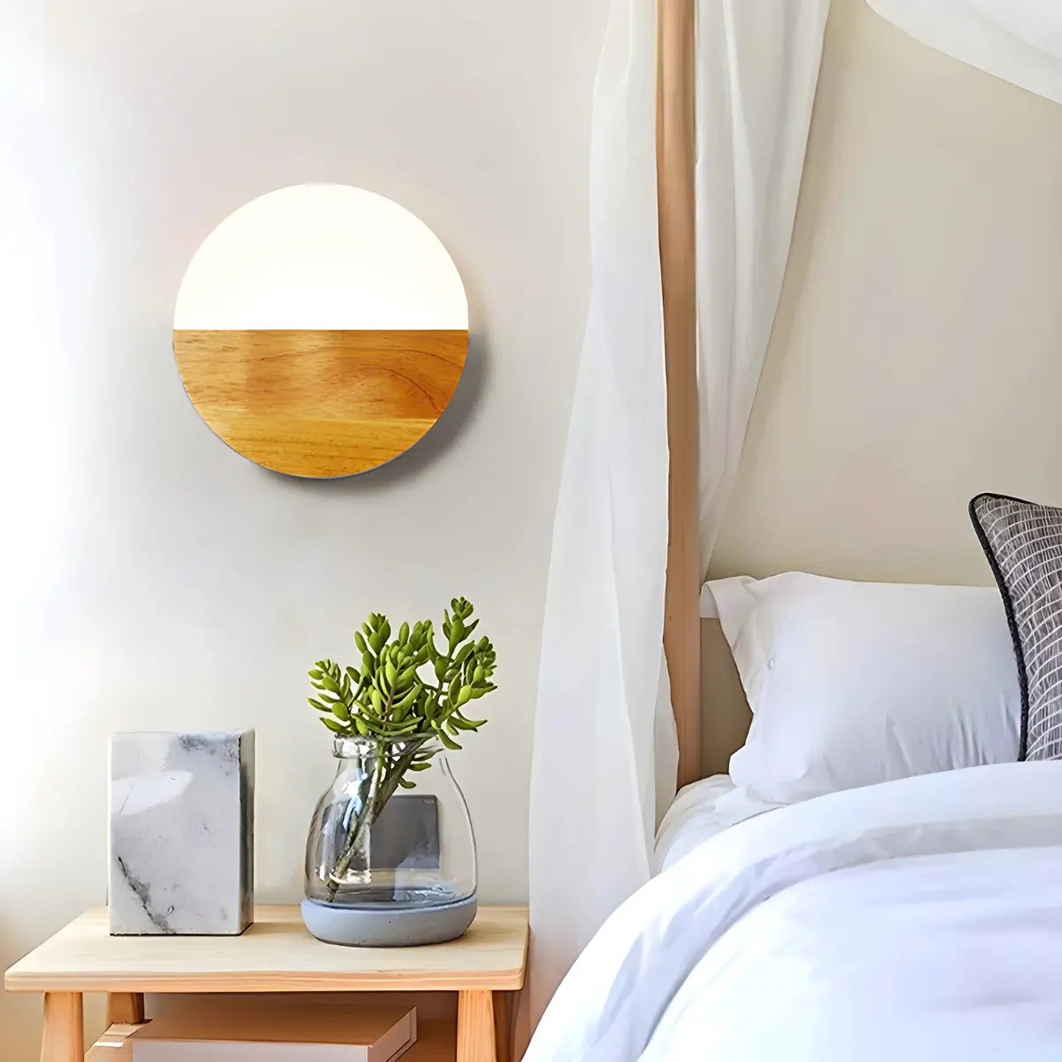 ZOWALA - Natural Wood White Acrylic Round Wall Sconce