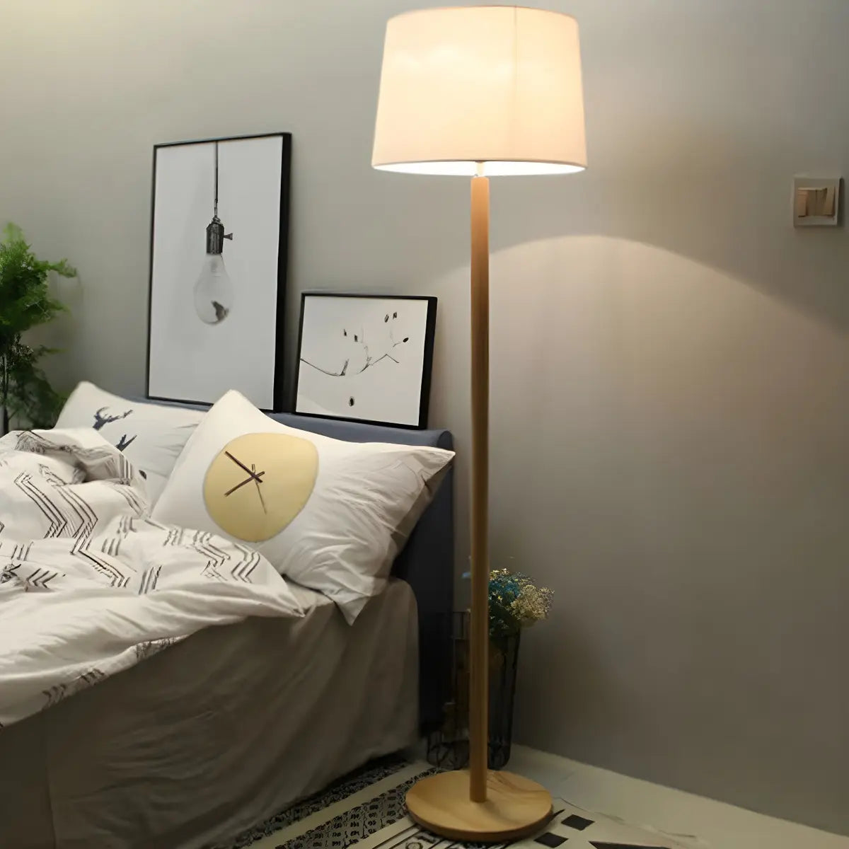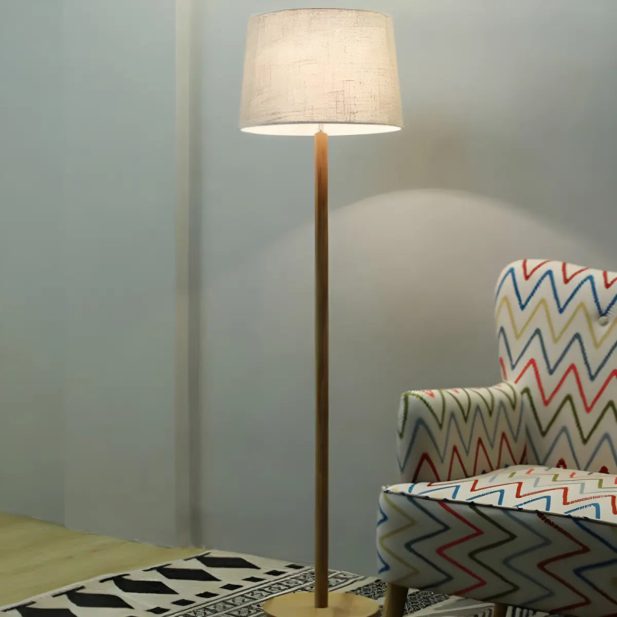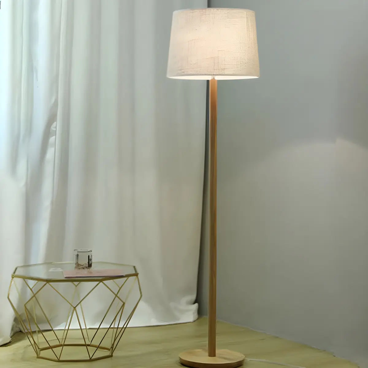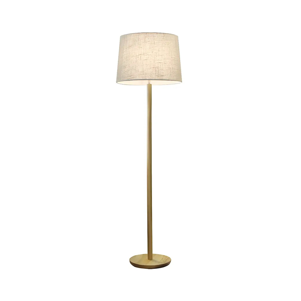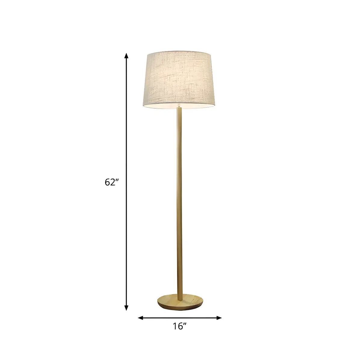 ZOWALA - Natural Wood White Fabric Barrel Floor Lamp