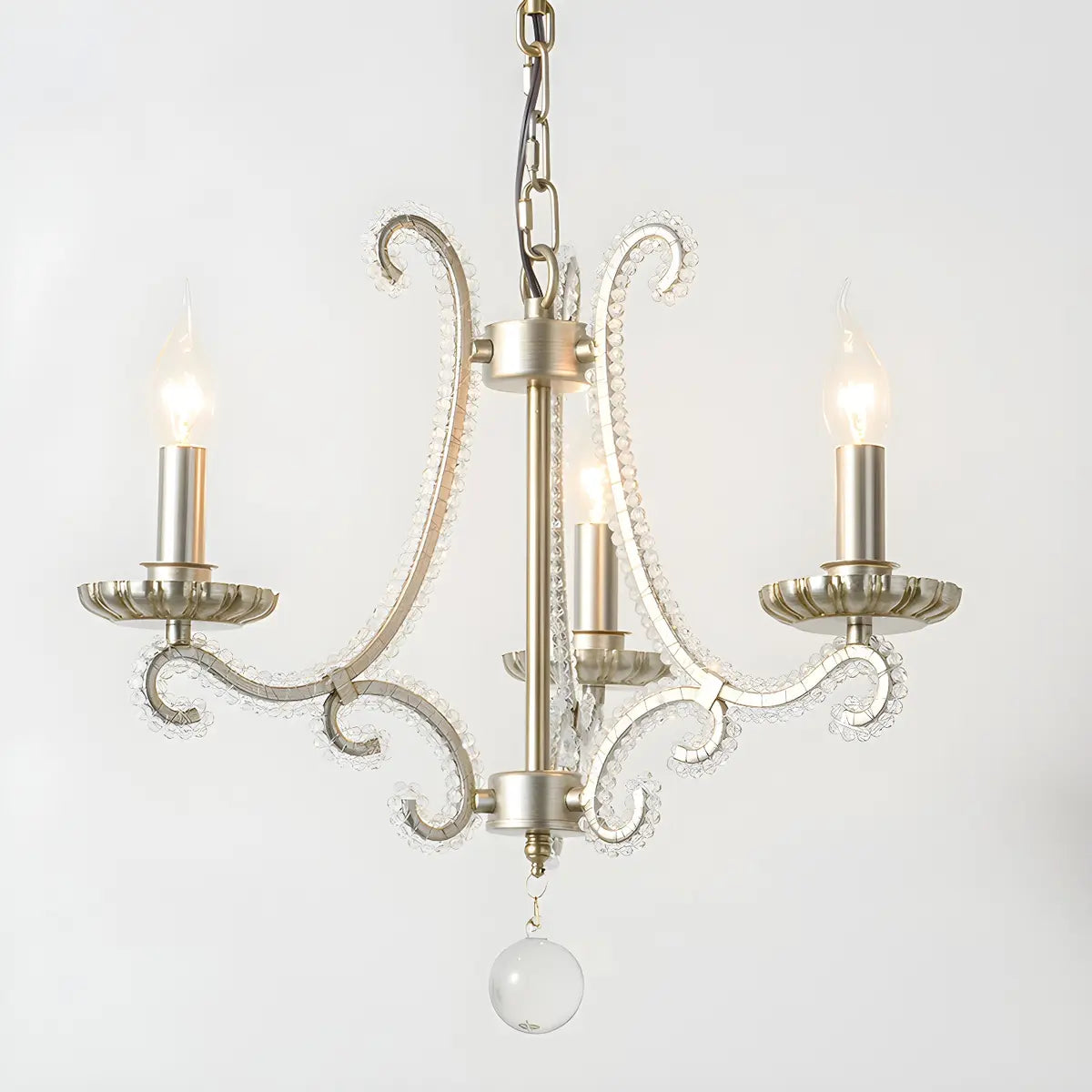 This traditional style 3-light candelabra chandelier is not only a lighting fixture, but also a work of art that fits perfectly into any interior. Its classic metal material and shadeless design make it an ideal choice to embellish the dining room, living room or bedroom and enhance the overall atmosphere.
