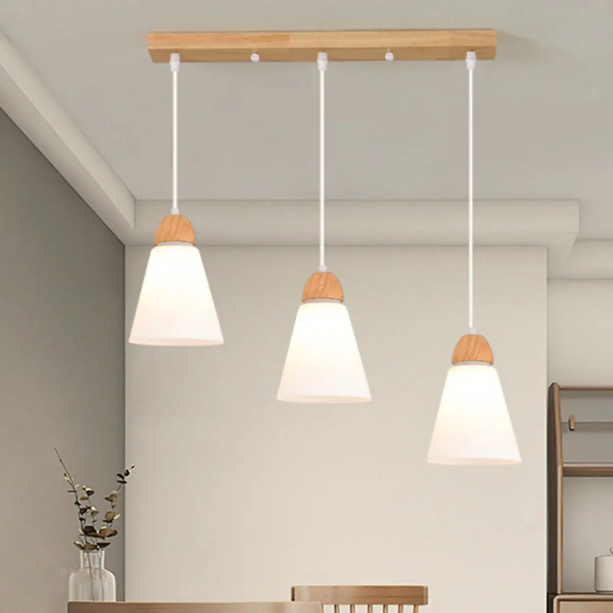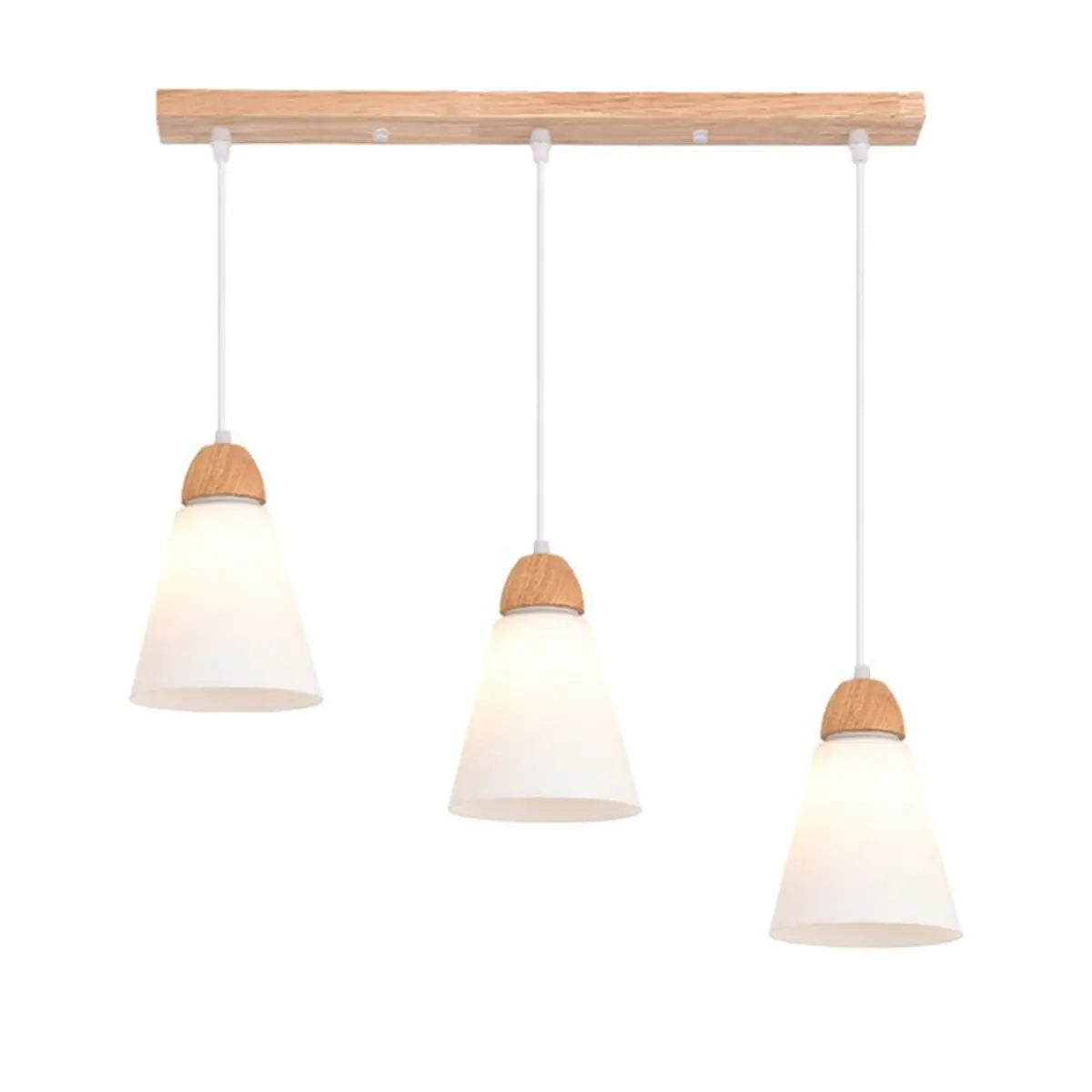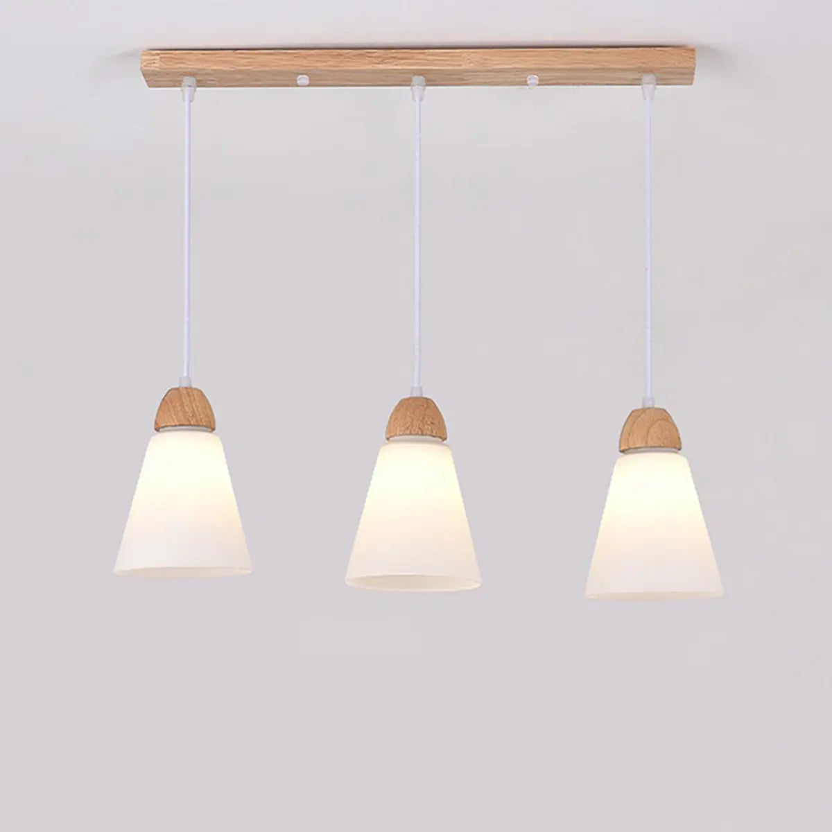 This pendant light stands out with its simple Nordic style design. The perfect combination of white conical lampshade and natural wood creates a warm kitchen atmosphere and enhances the artistic sense of home decoration.