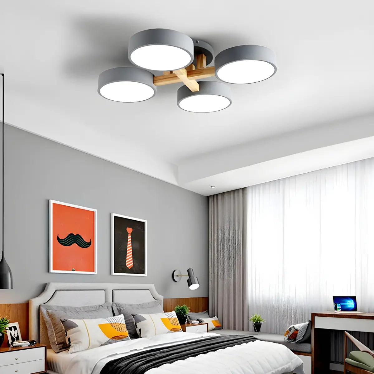 This modern metal round ceiling lamp combines style and functionality, perfect for a variety of settings including living rooms and bedrooms.