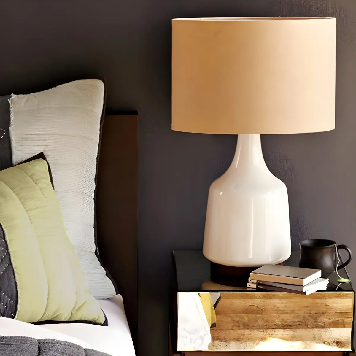 ZOWALA - Nordic Drum Fabric Ceramic Bottle Base Table Lamp