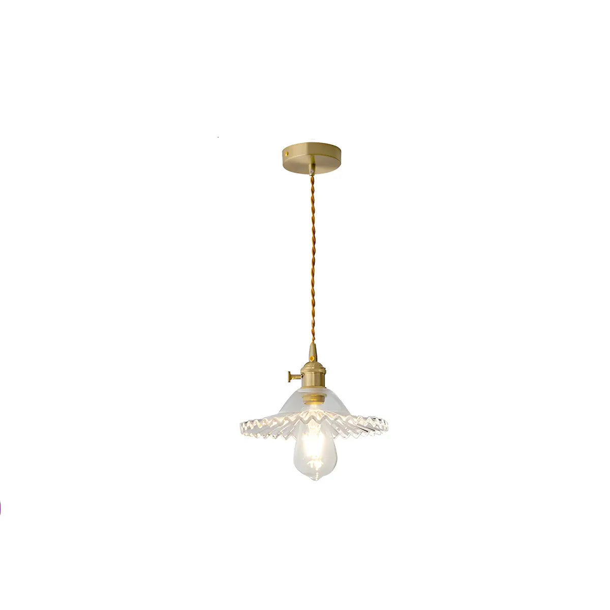 This pendant light features golden glass and modern metal design, showing an elegant and natural artistic style. Its fancy lampshade emits a charming halo when lit, adding a smart beauty to the kitchen and perfectly setting off the freshness and vitality of the space.