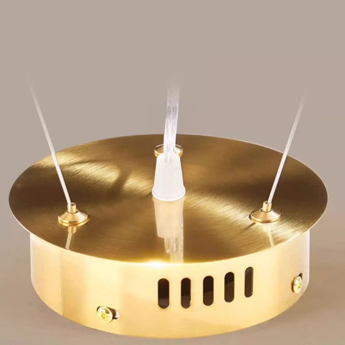 More than just a lighting fixture, this geometric modern round glass chandelier is a work of art that adds an elegant touch to any room. Its round design complemented by gold details creates a sense of elegance, like bright petals blooming in the air.