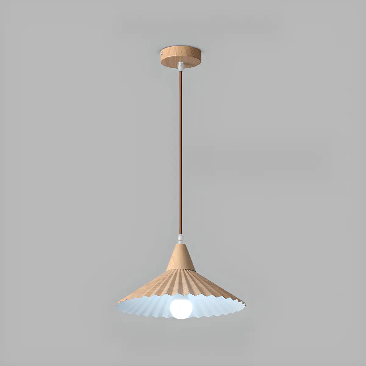 ZOWALA - Nordic Wood Color Cone Pleated Pendant Light