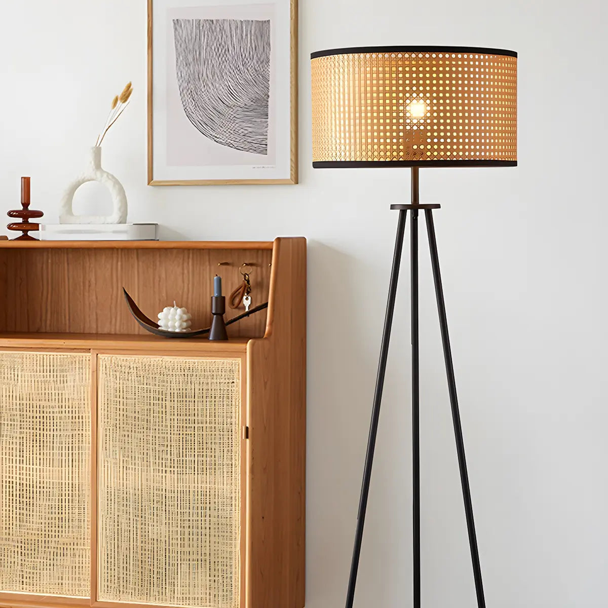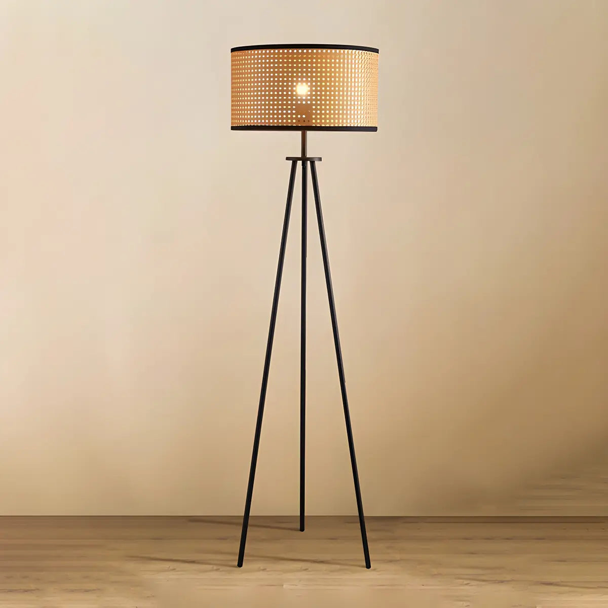 ZOWALA - Nordic Rattan Barrel Black Tripod Floor Lamp