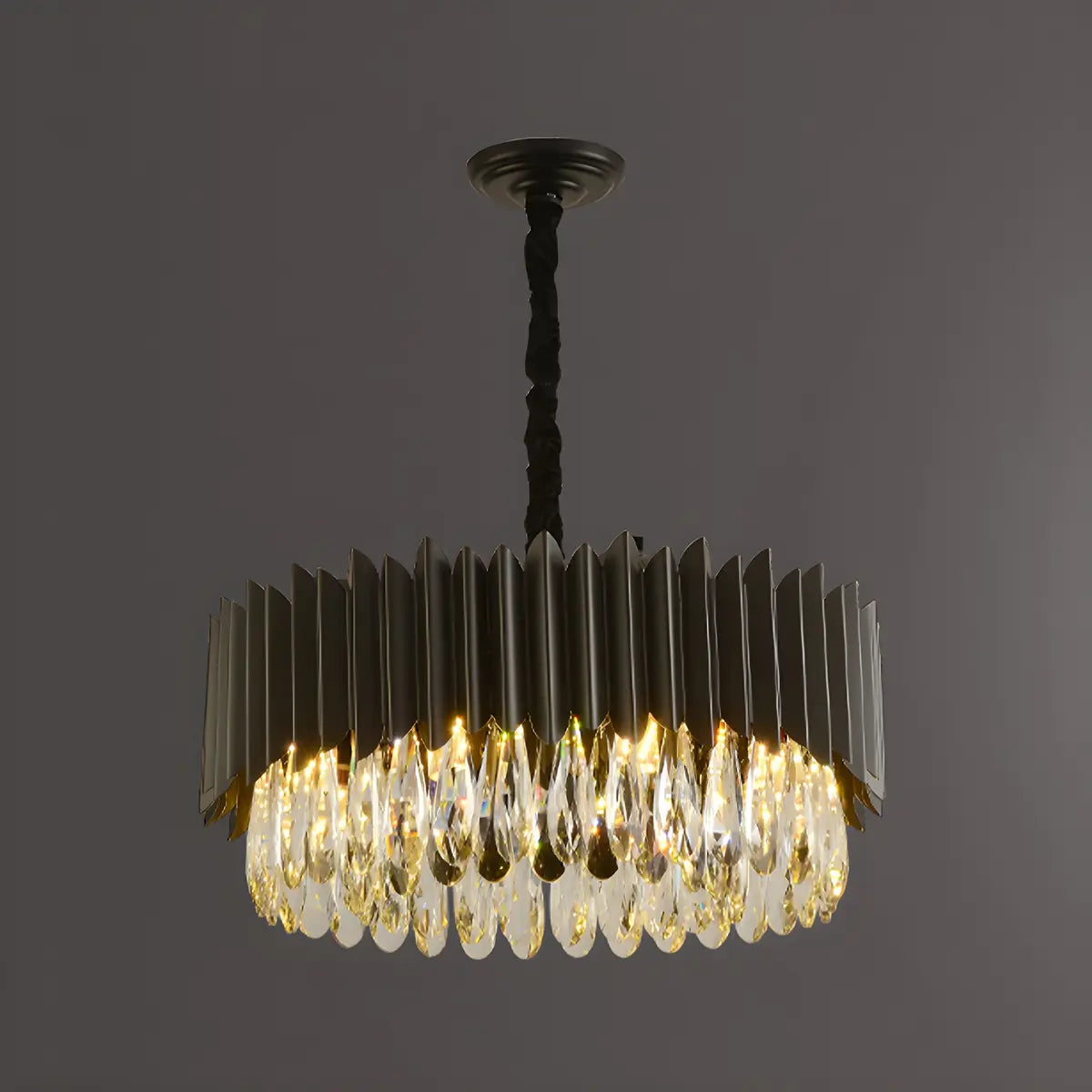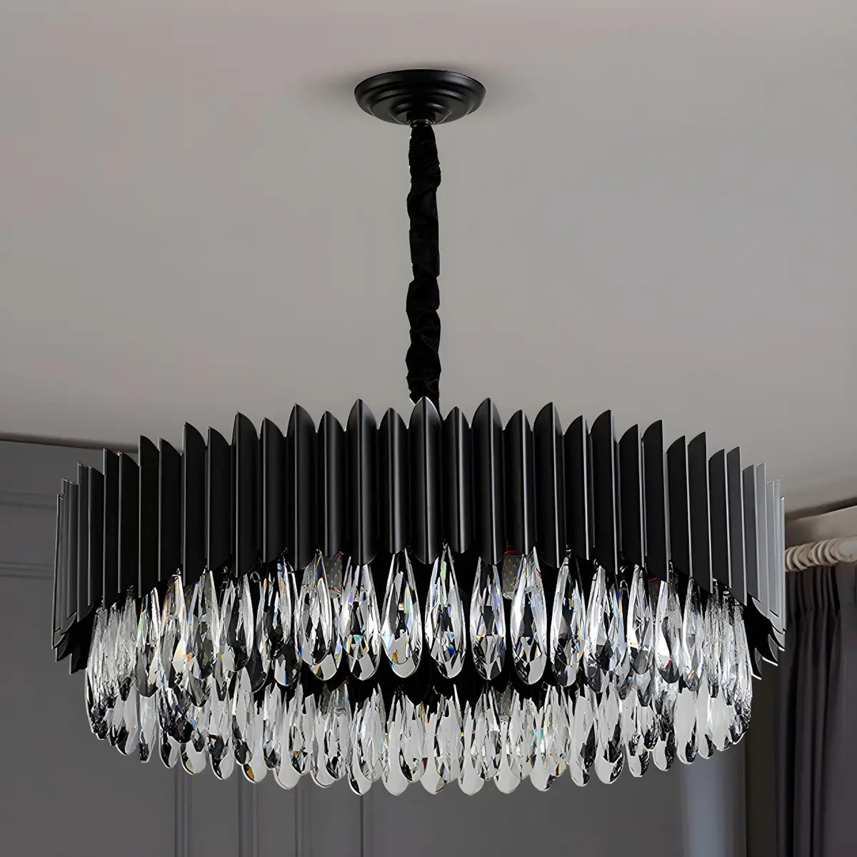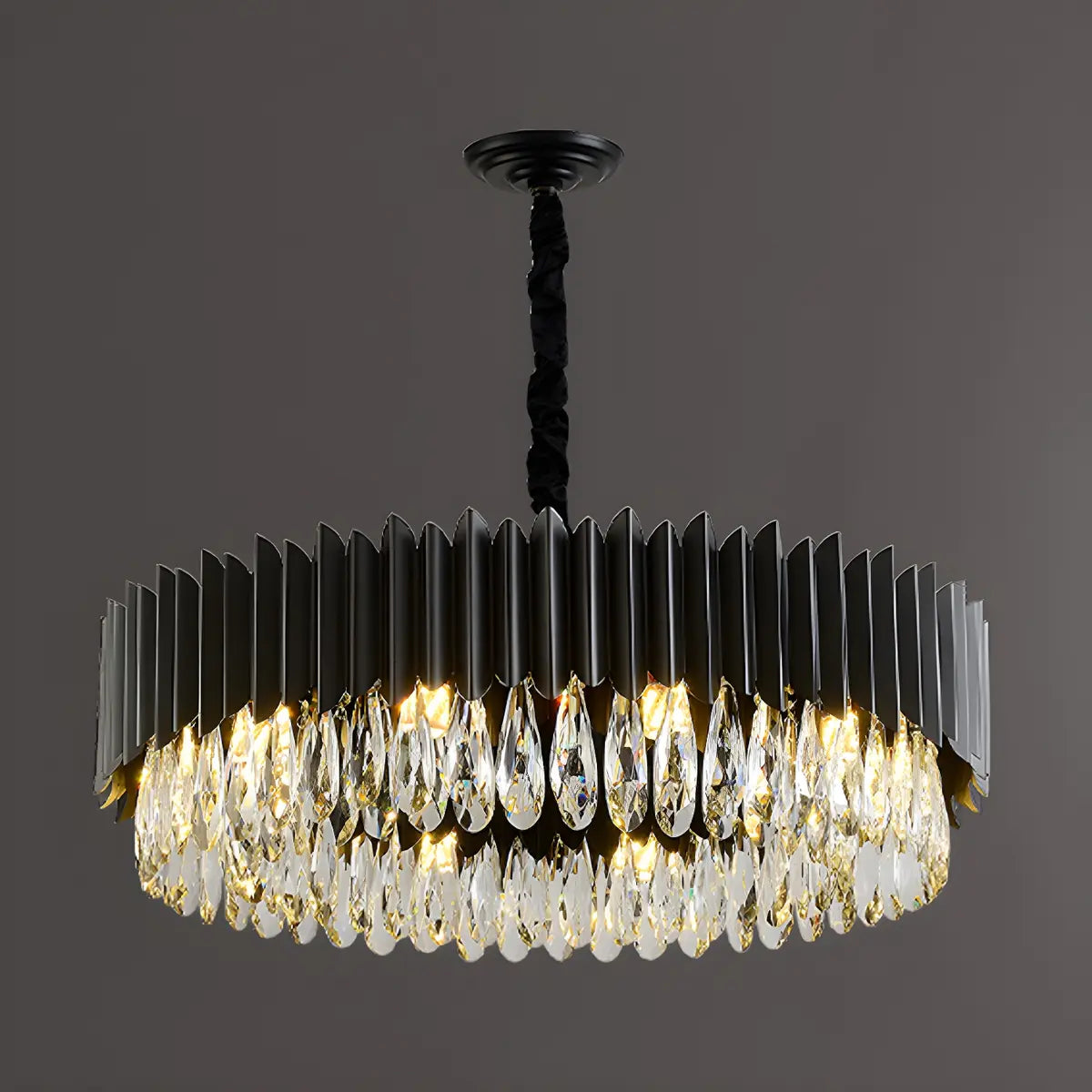 ZOWALA - Nordic Black Metal Crystal Round Chandelier