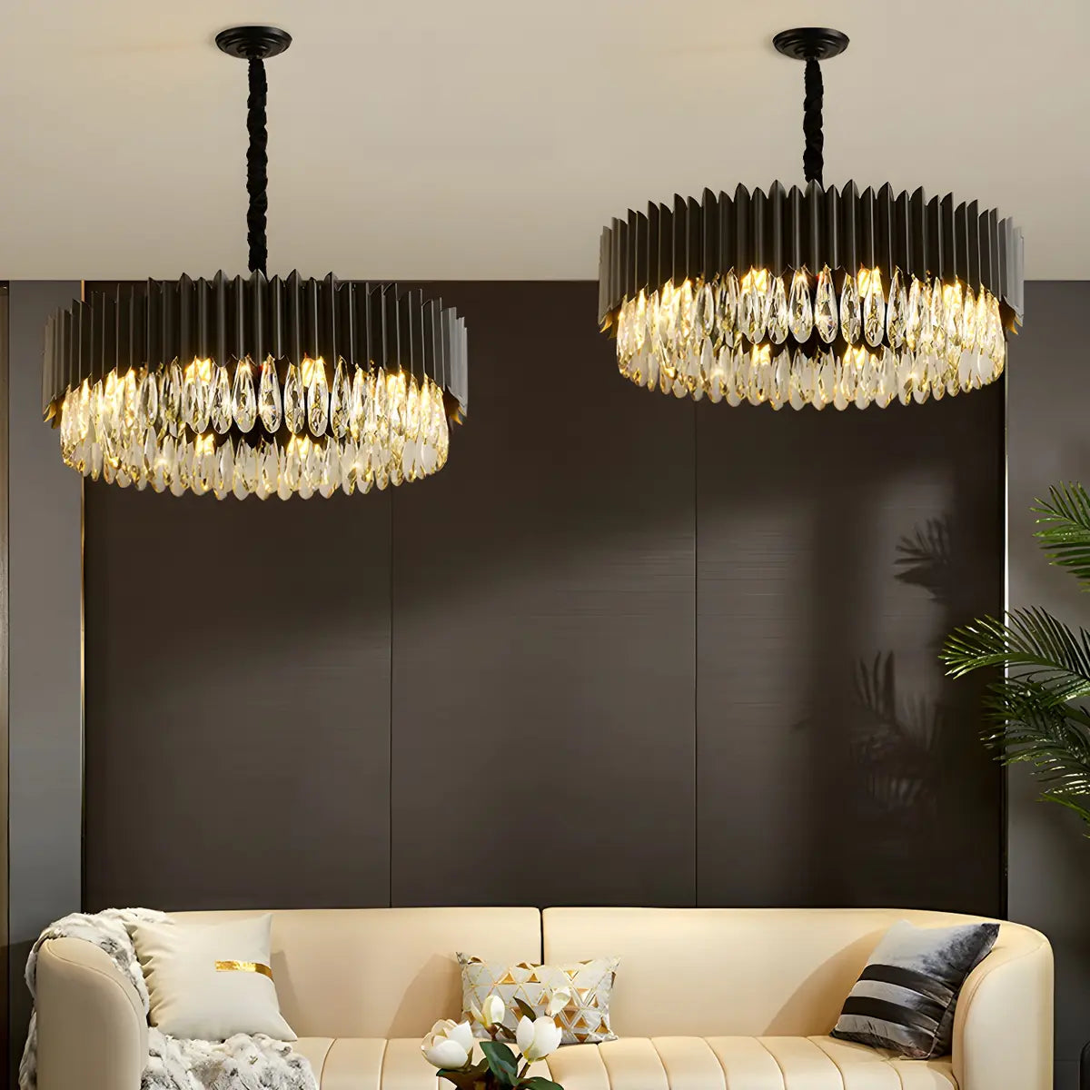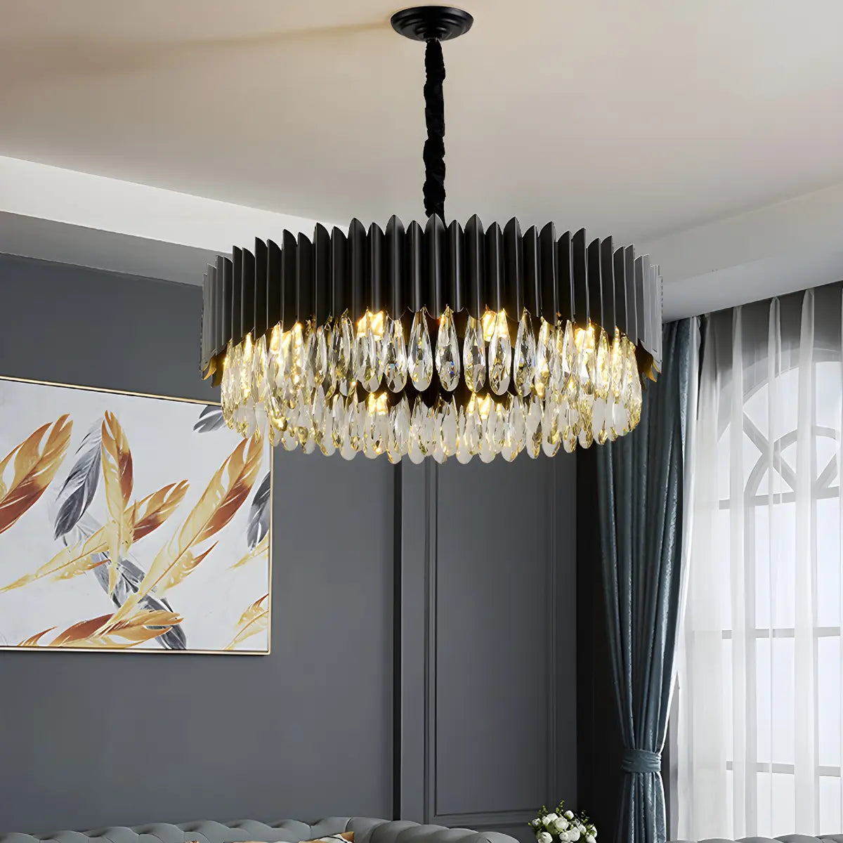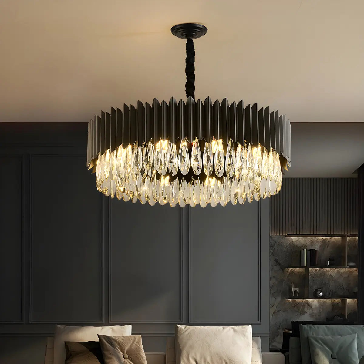 ZOWALA - Nordic Black Metal Crystal Round Chandelier