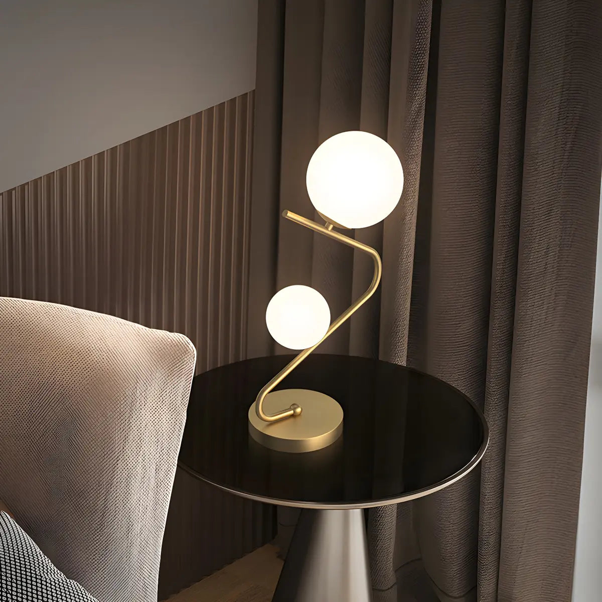 ZOWALA - Nordic Spiral Gold 2-Light Globe Glass Table Lamp